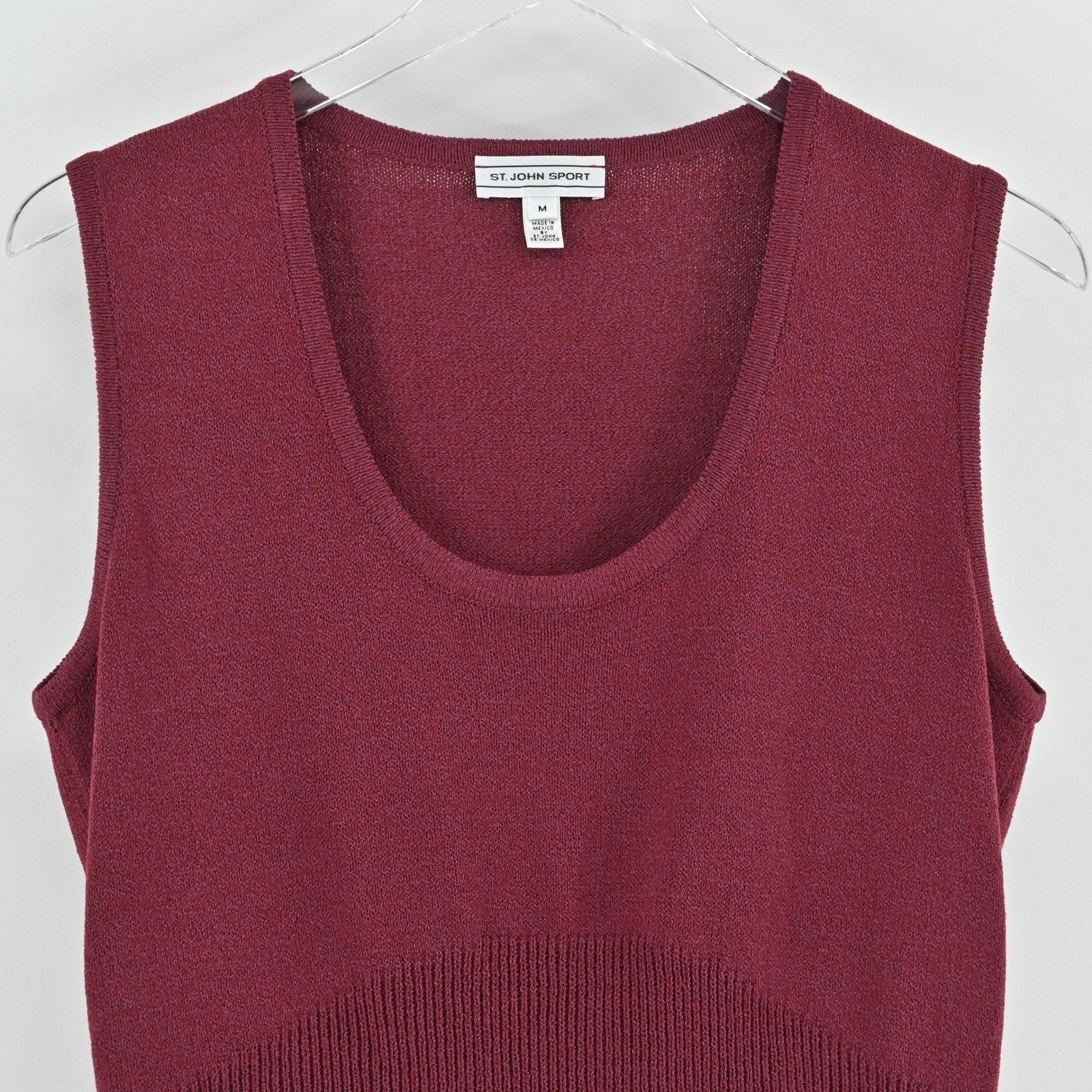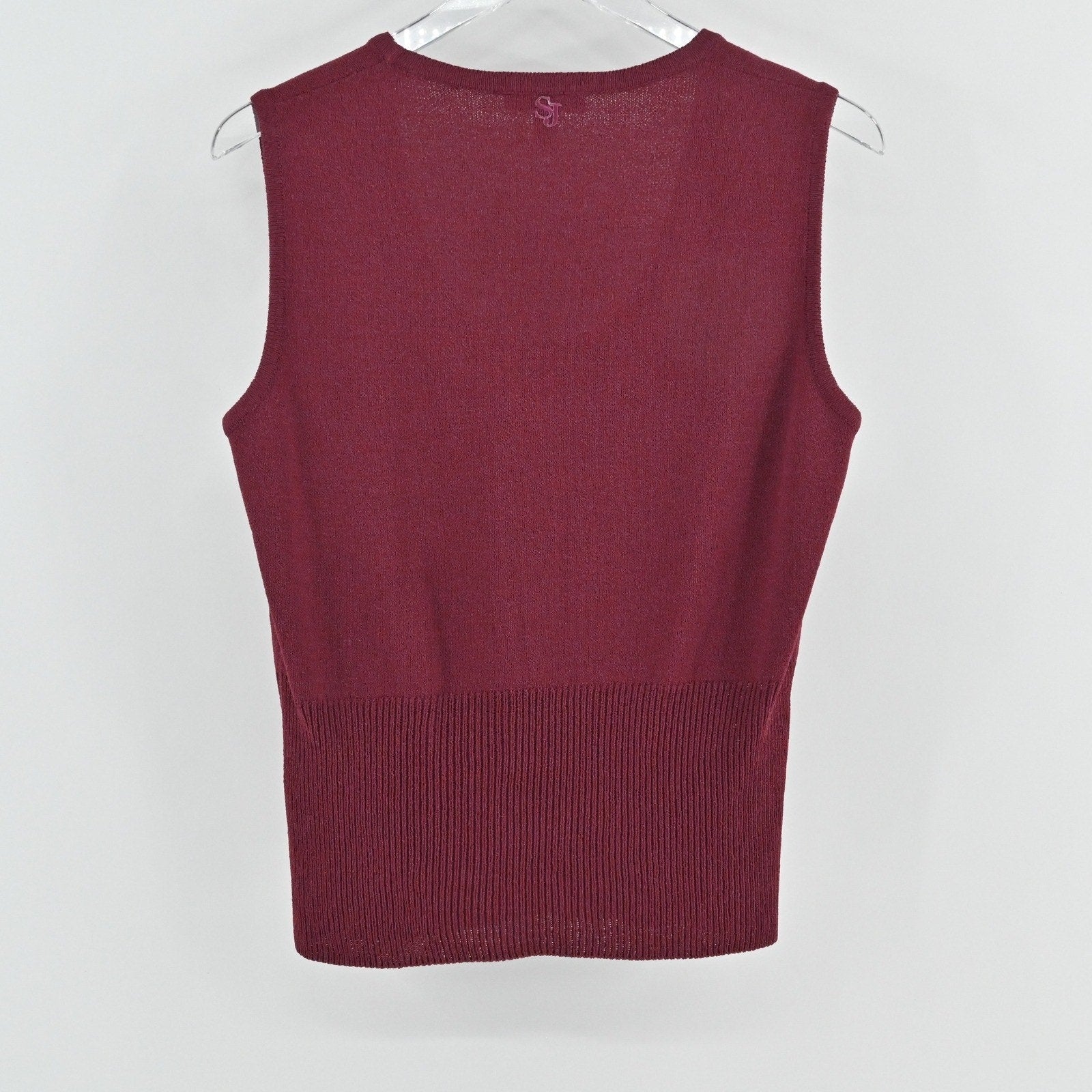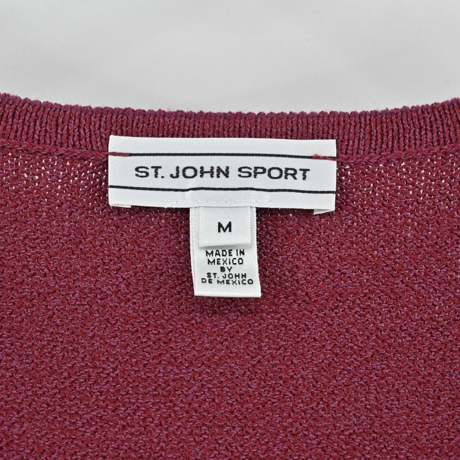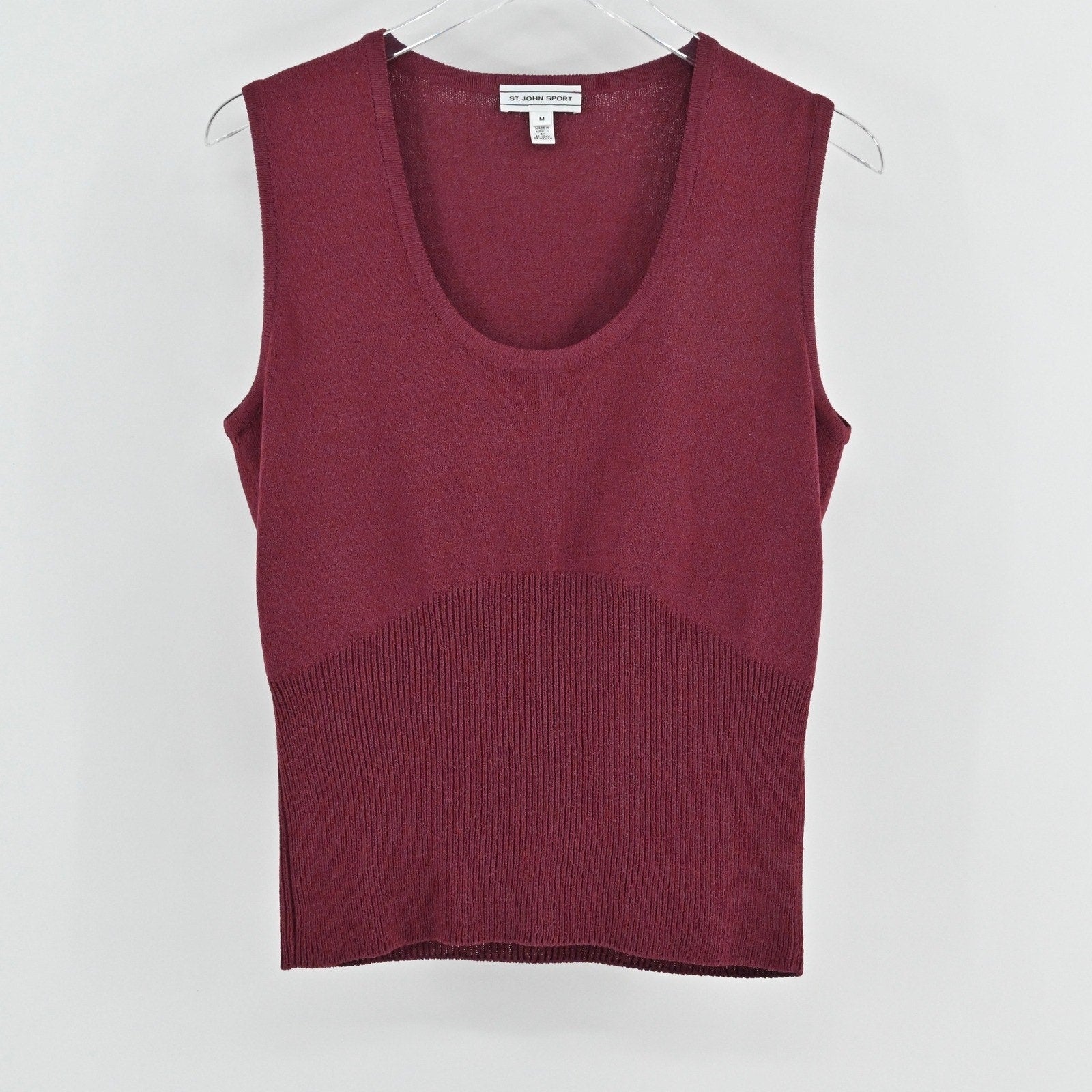 Vtg St John Womens Wool Knit Top Size M Burgundy Quiet Luxury Refined Dog Show