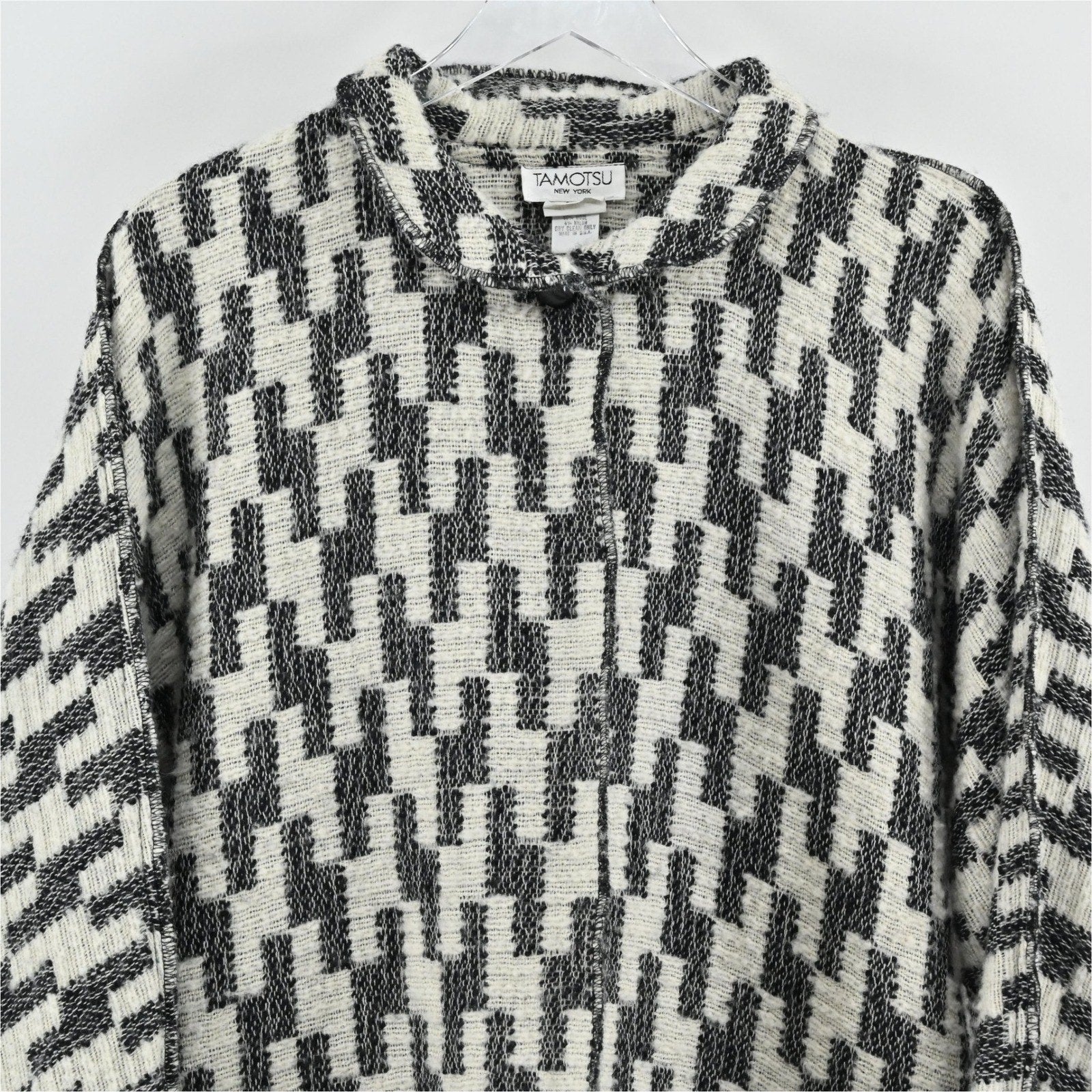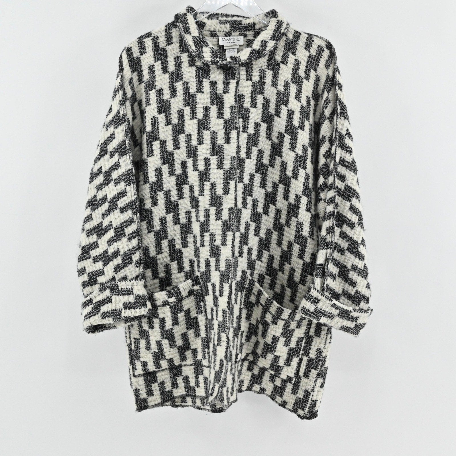 Vtg Tamotsu Womens Wool Oversized Cardigan One Size Geometric Pattern Pockets