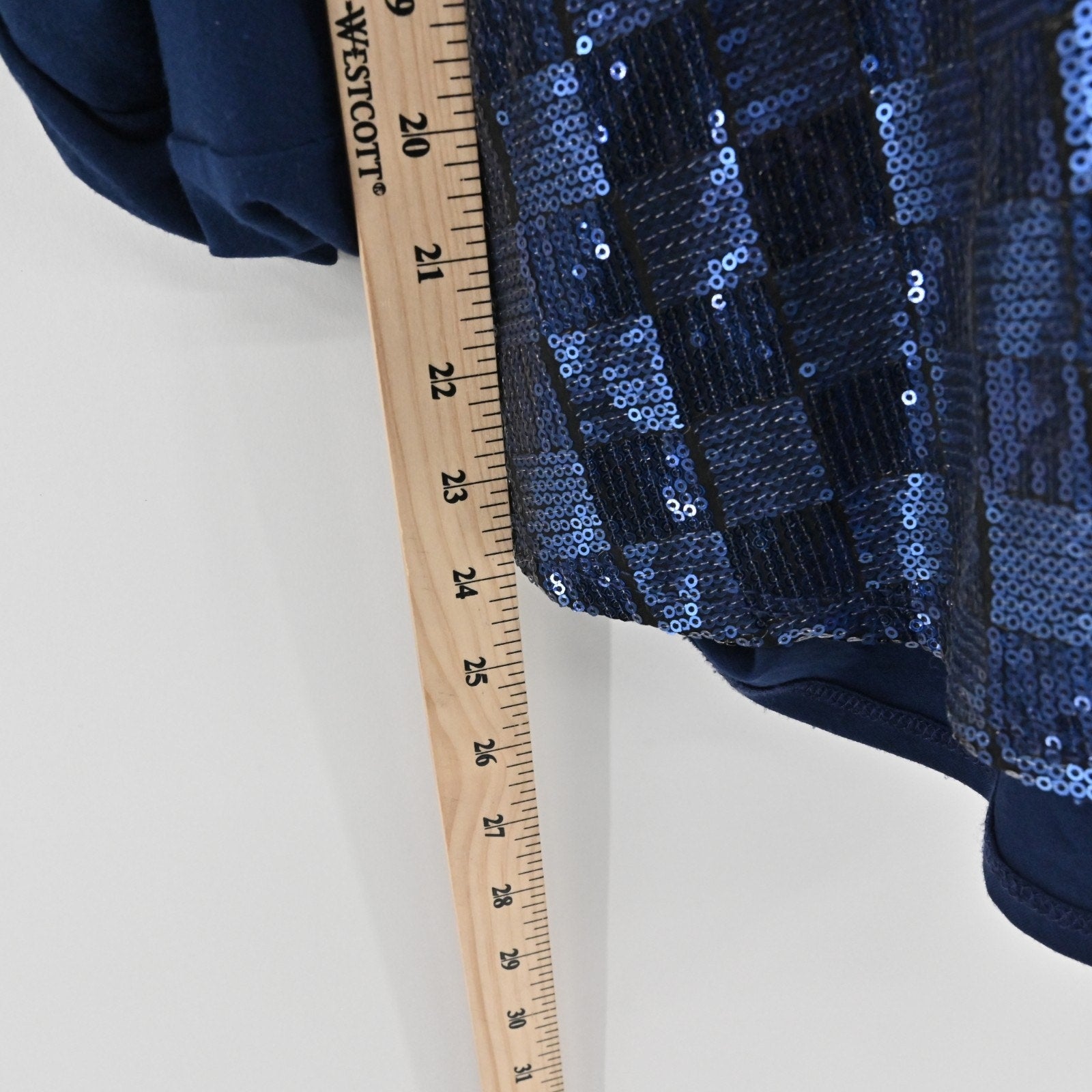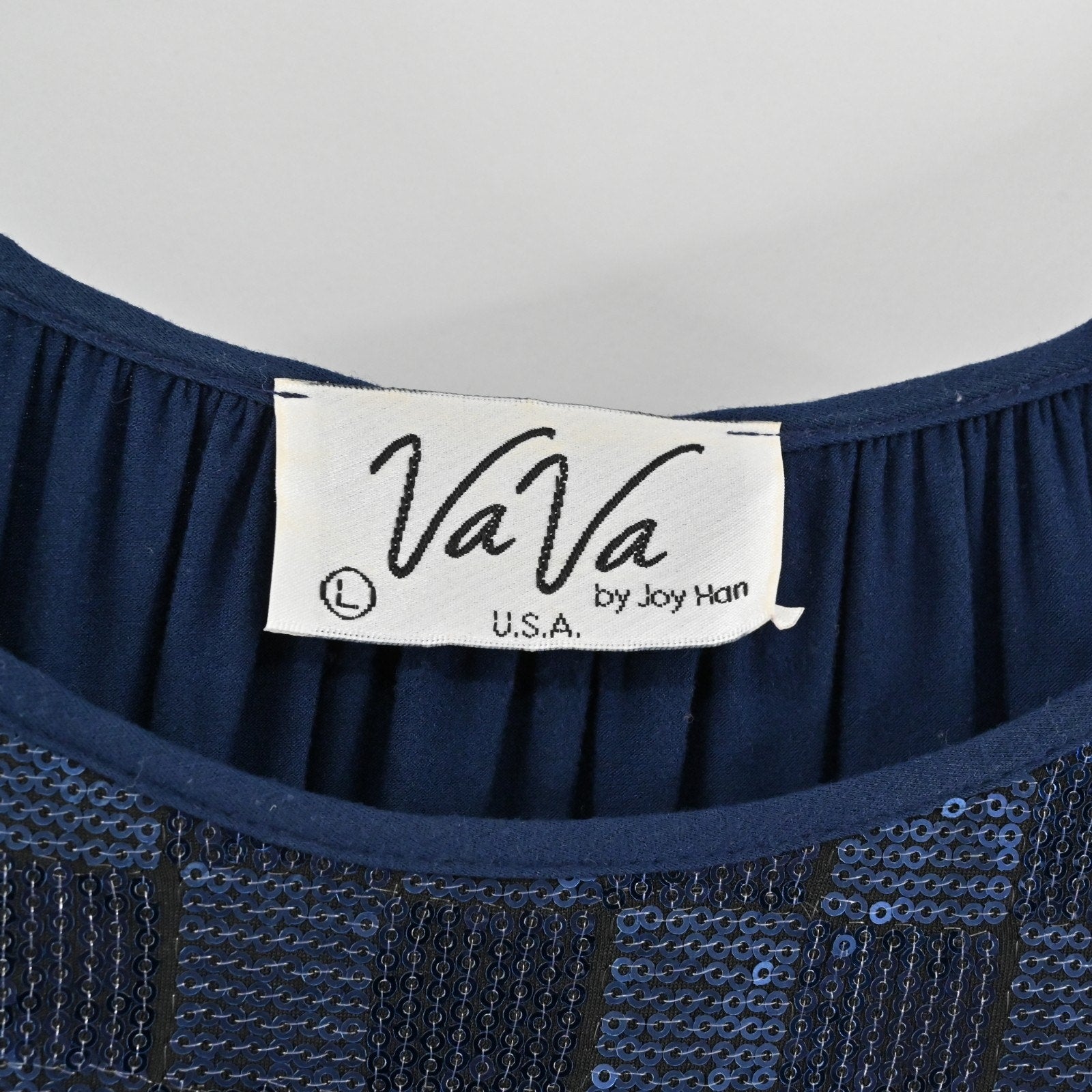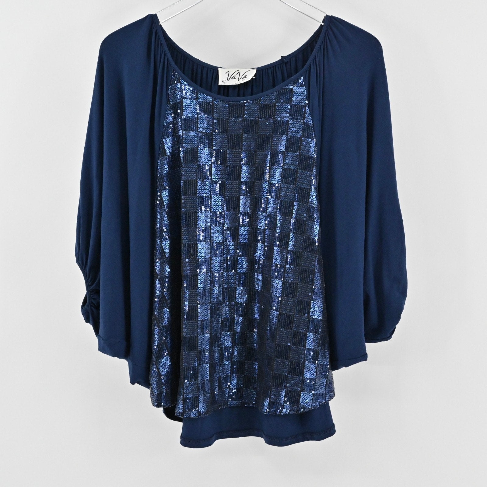 Vtg VaVa Joy Han Womens Sequin Top Size L Blue Checkered Batwing Dolman Sleeve