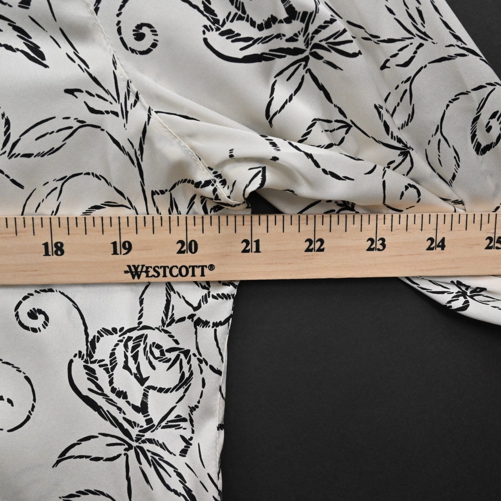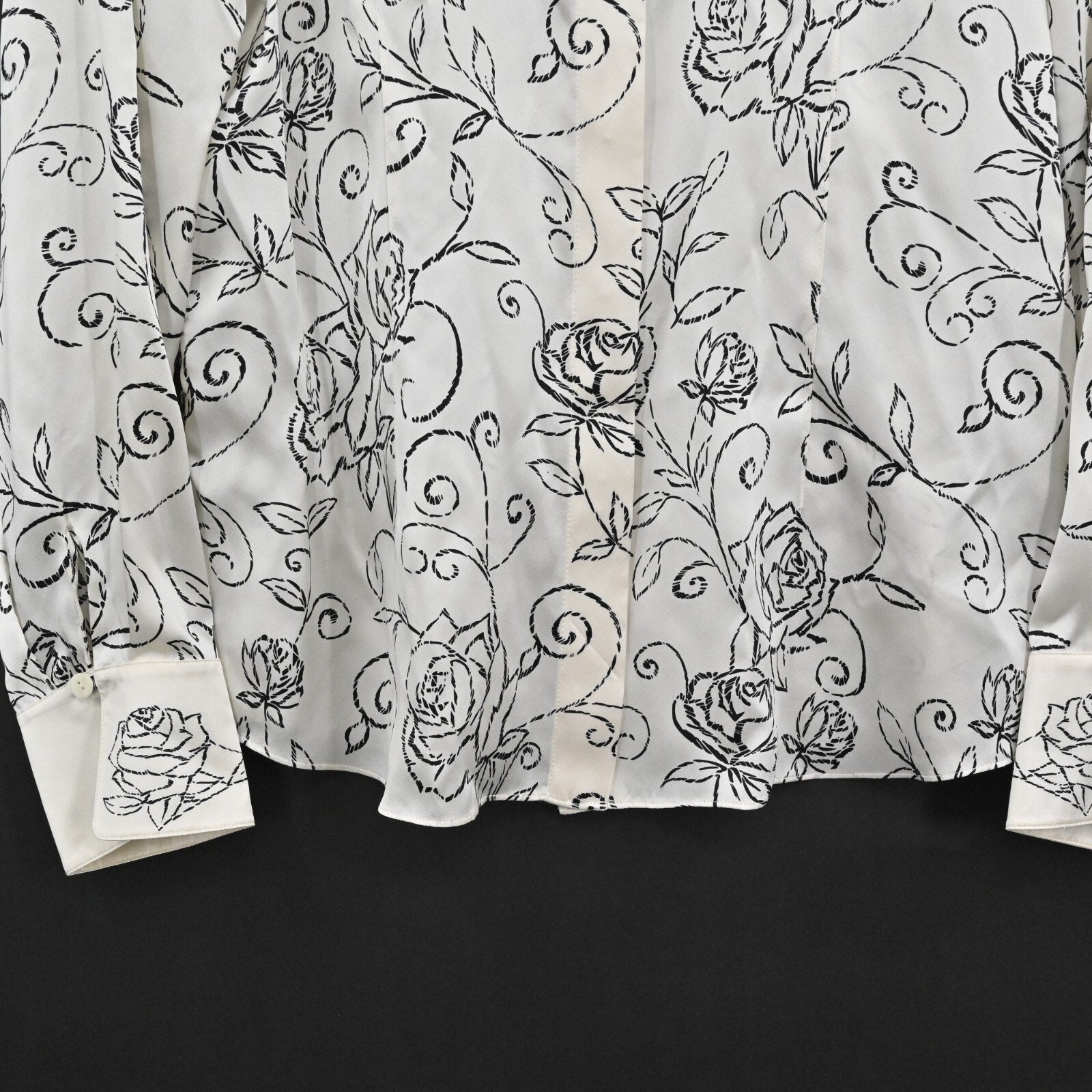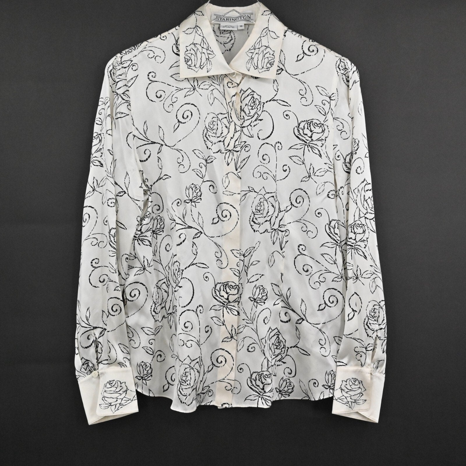 Vtg Womens Floral Silk Top Size 10 Satin Black Ivory Print Blouse STARINGTON 80s