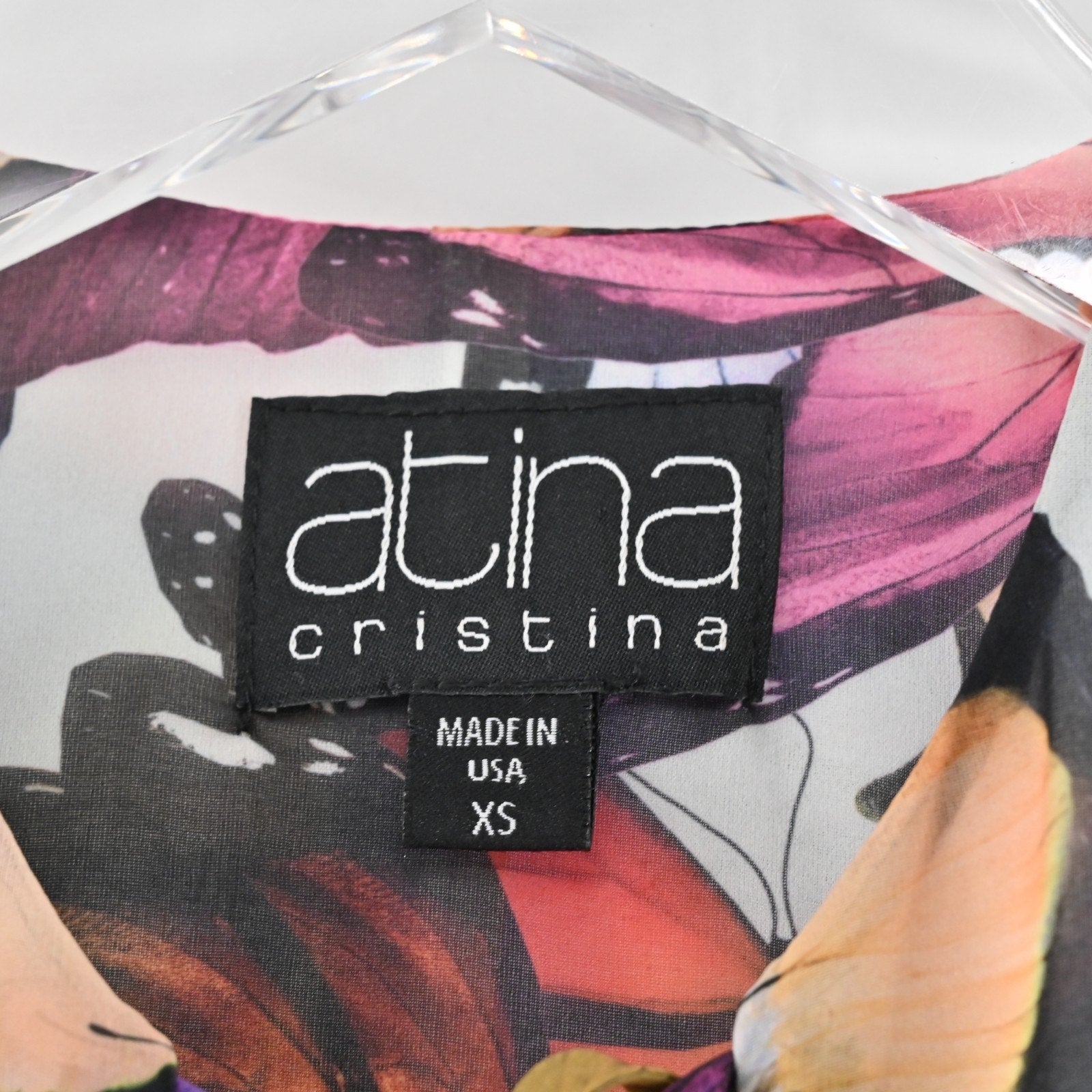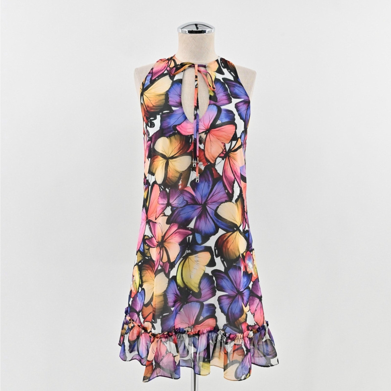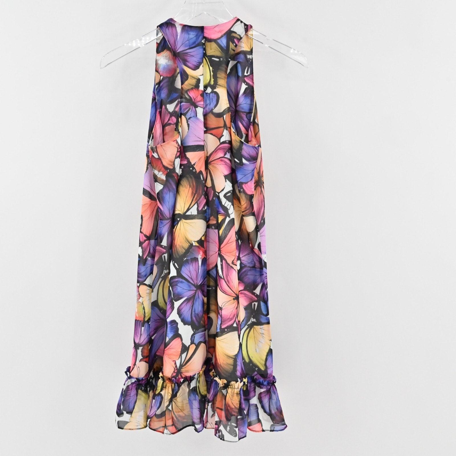 Vtg Y2k Atina Cristina Colorful Butterfly Mini Dress Sz XS Sleeveless Ruffle Hem