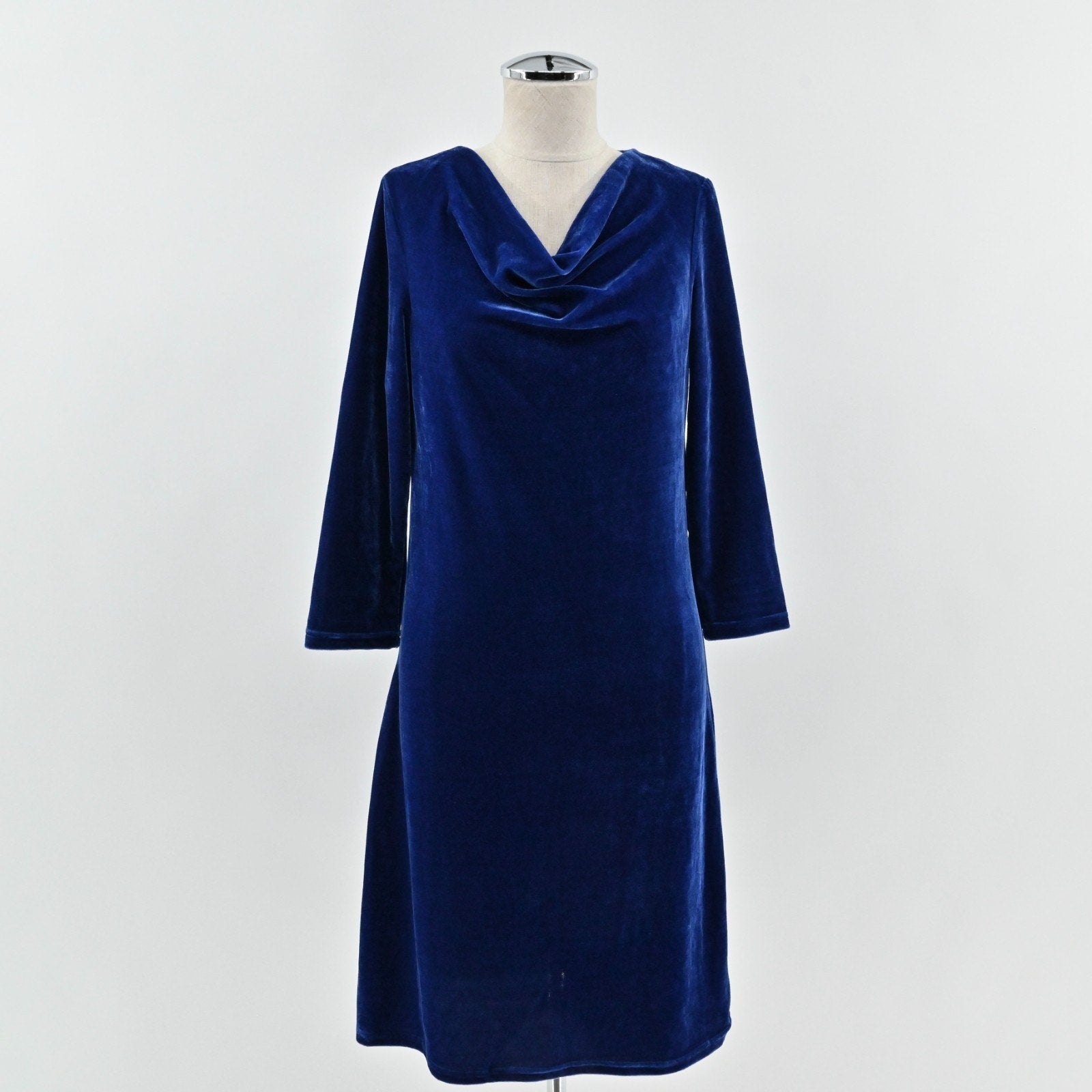 Vtg Y2k Blue Velvet Dress Womens Size 38 Cowl Neck Velour Whimsigoth Holiday