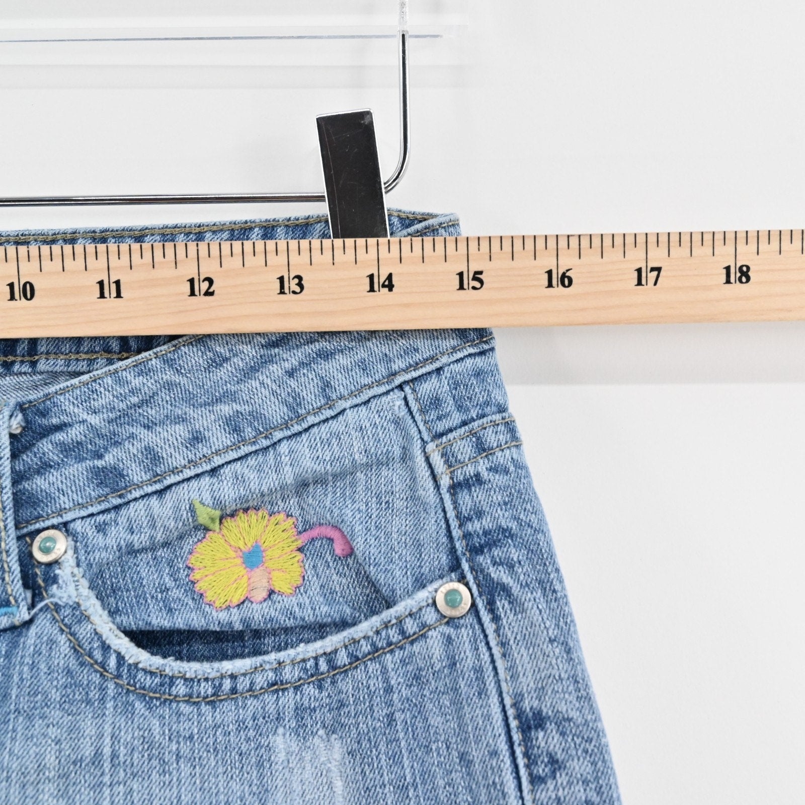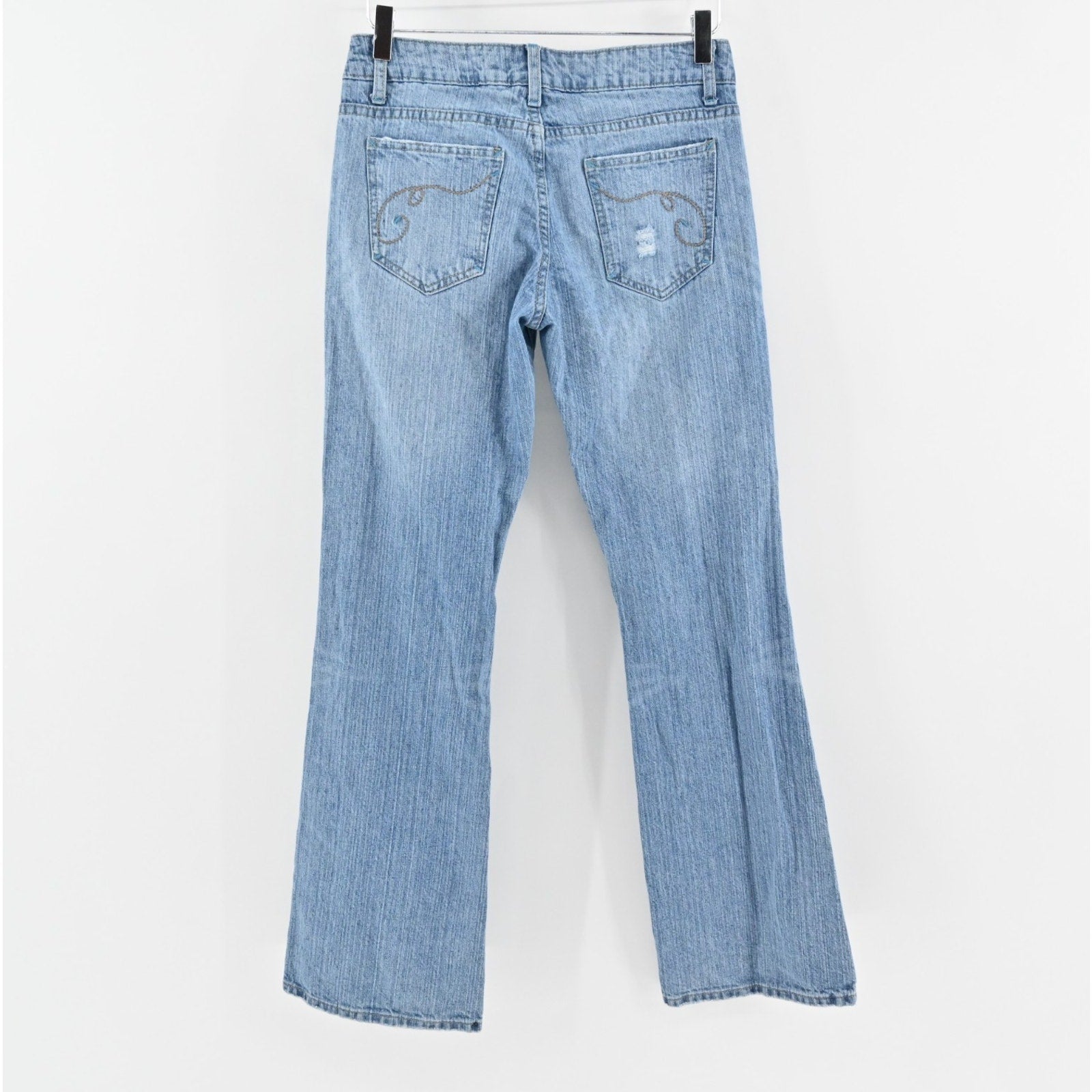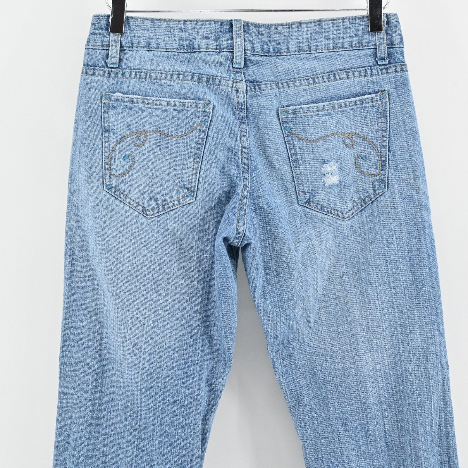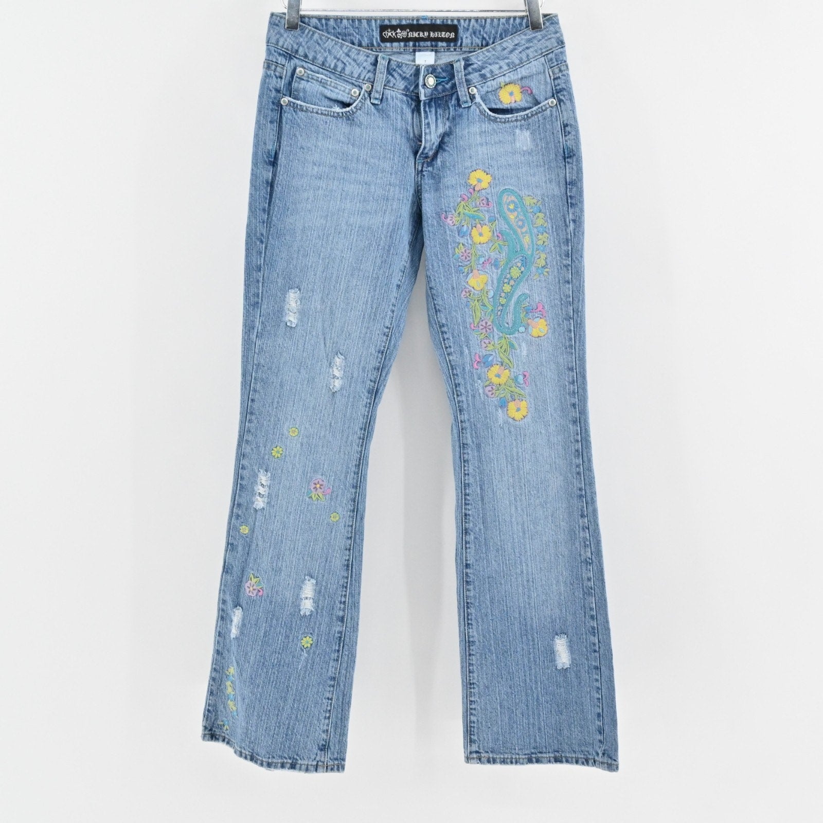 Vtg Y2k Floral Embroidered Jeans Sz 7 Low Rise Flare Distressed Paisley Festival