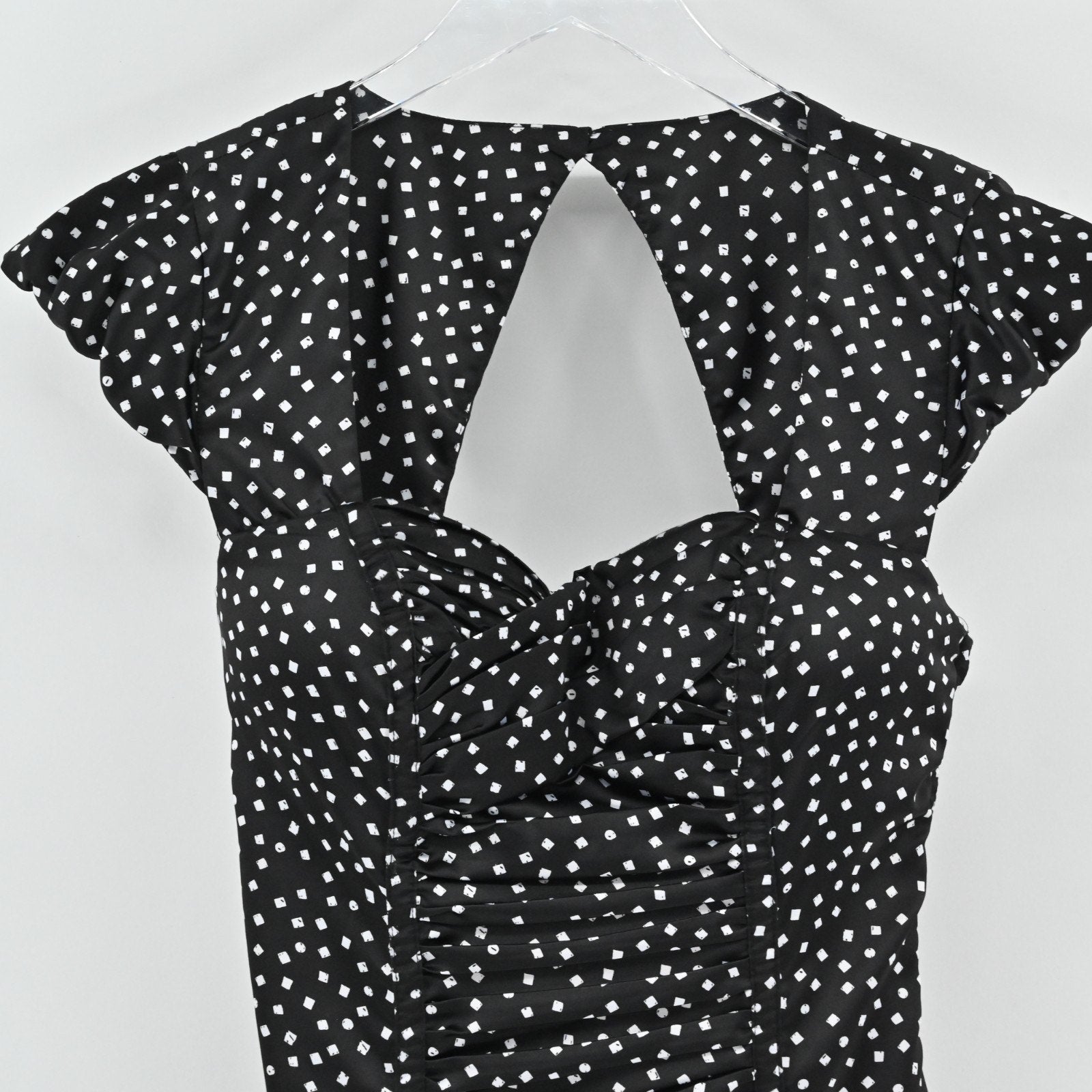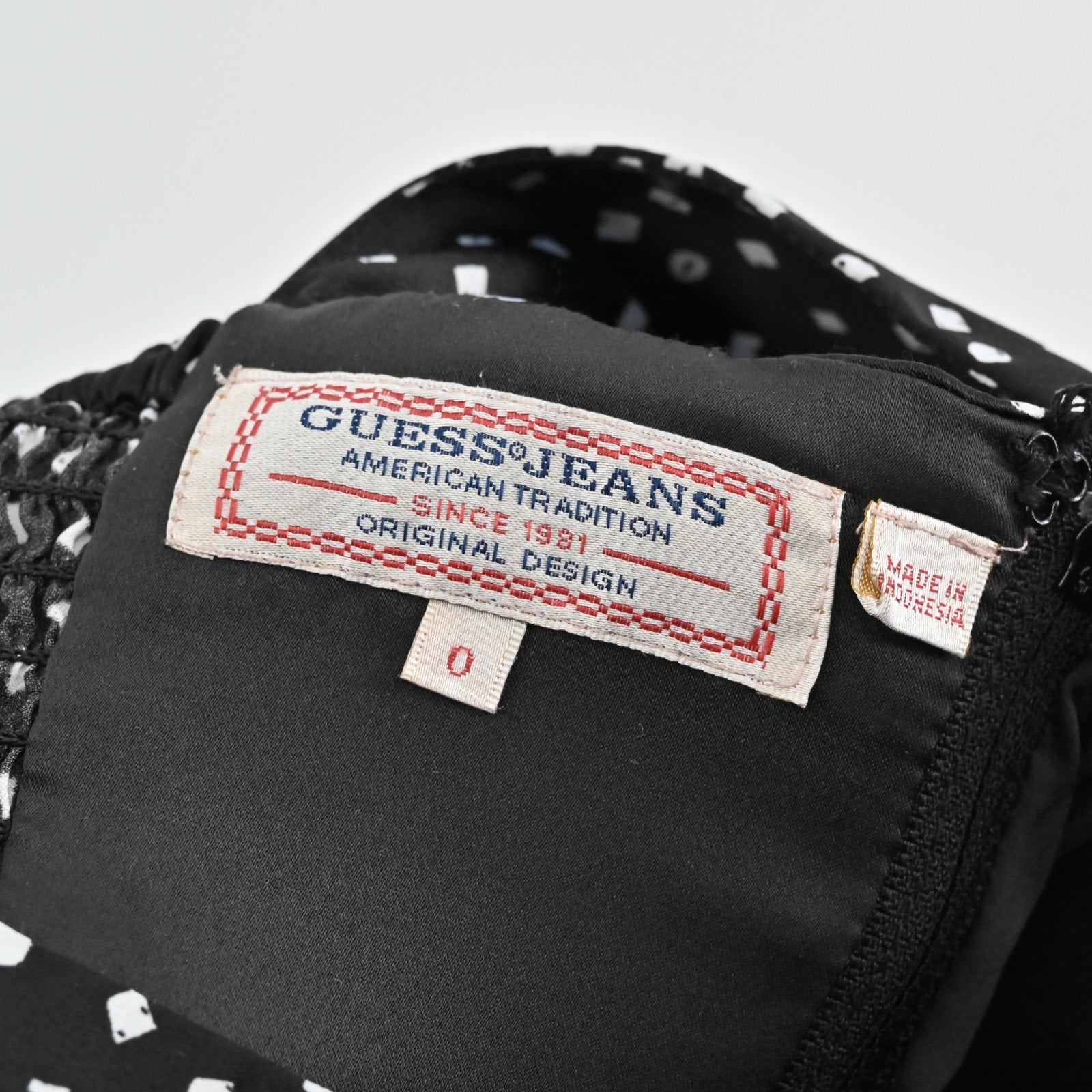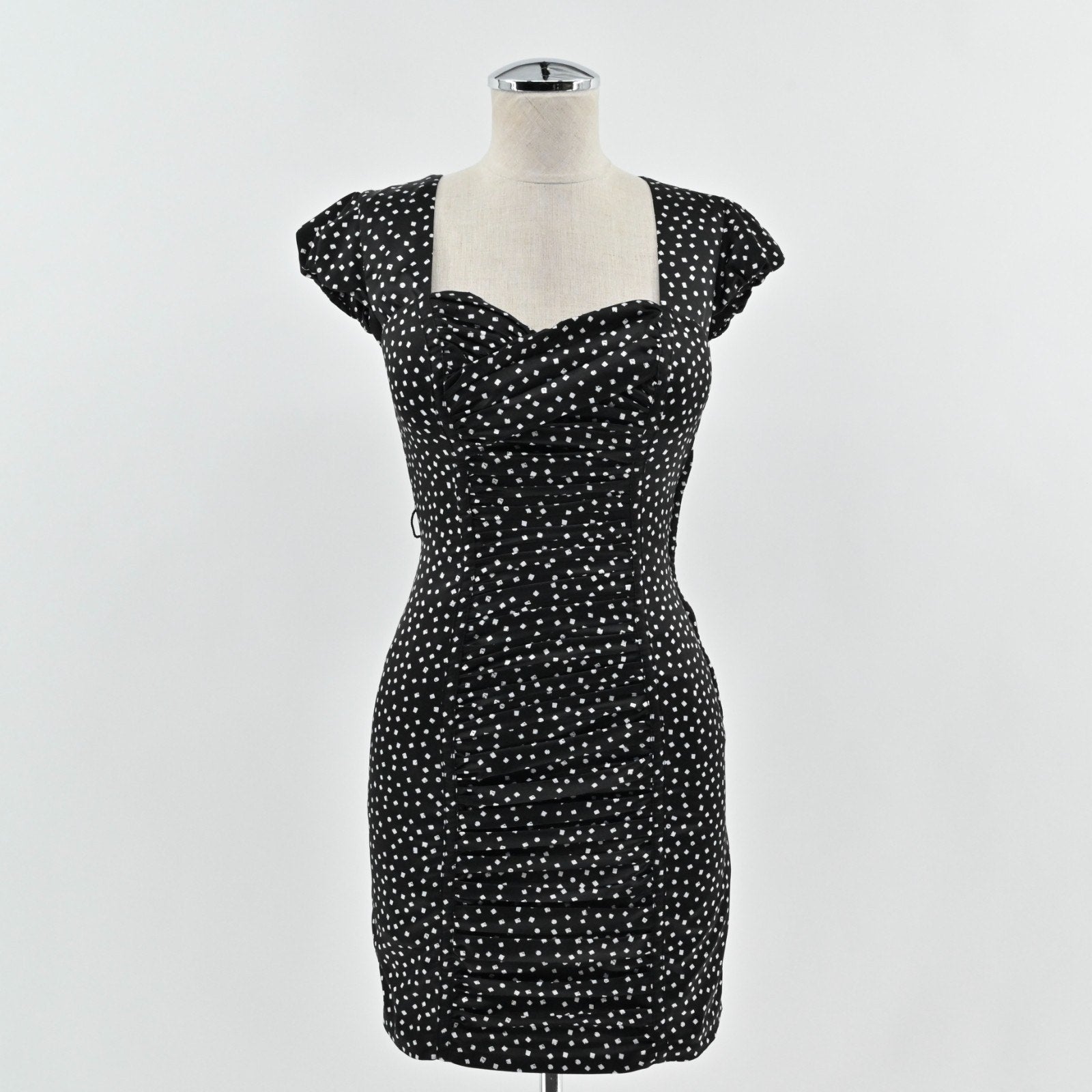 Vtg Y2k Guess Pin Up Dress Size 0 Rockabilly Polka Dot Retro Black White Ruched