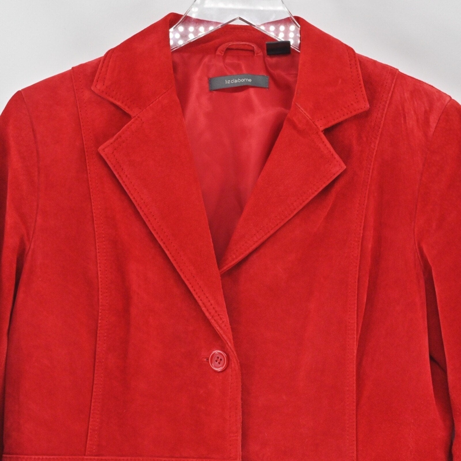 Vtg Y2k LIZ CLAIBORNE Womens Suede Jacket Size M Red Leather Button Western Boho