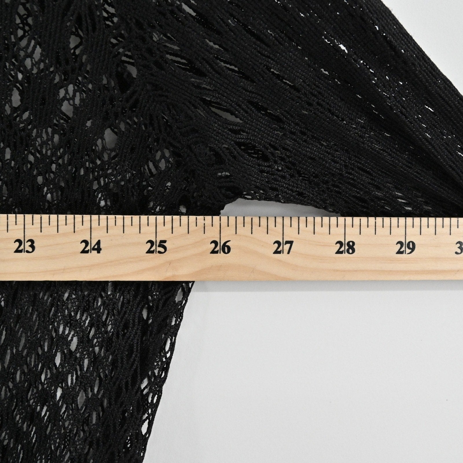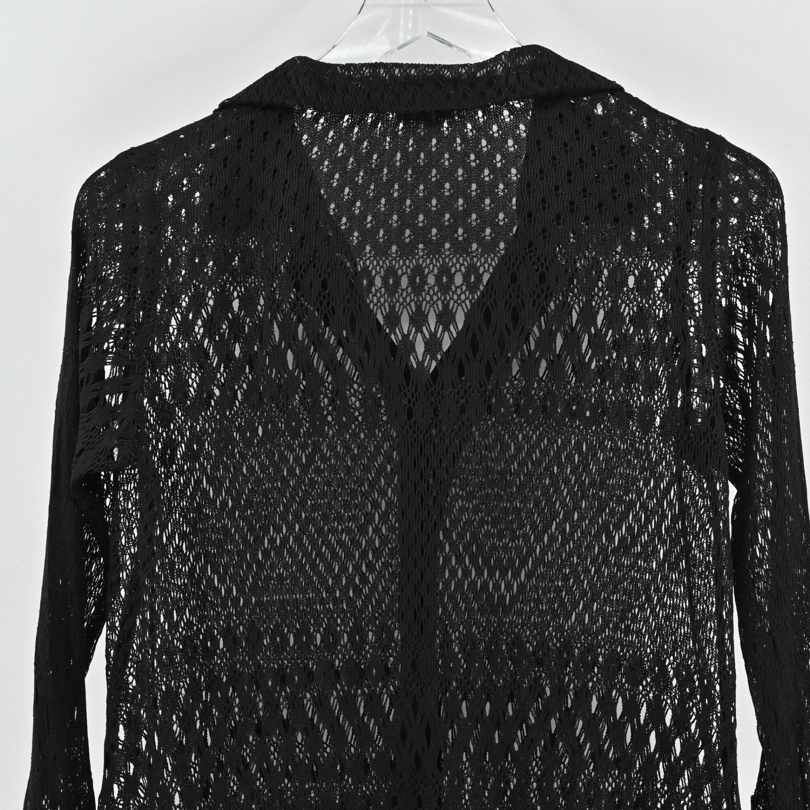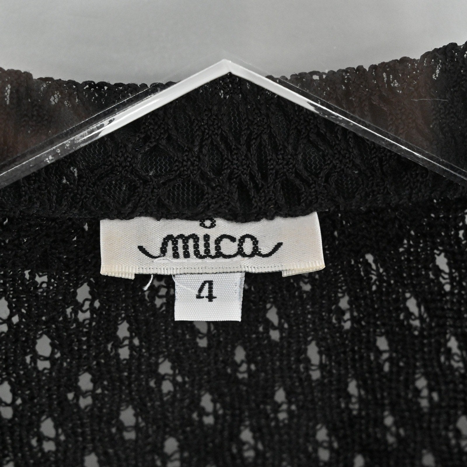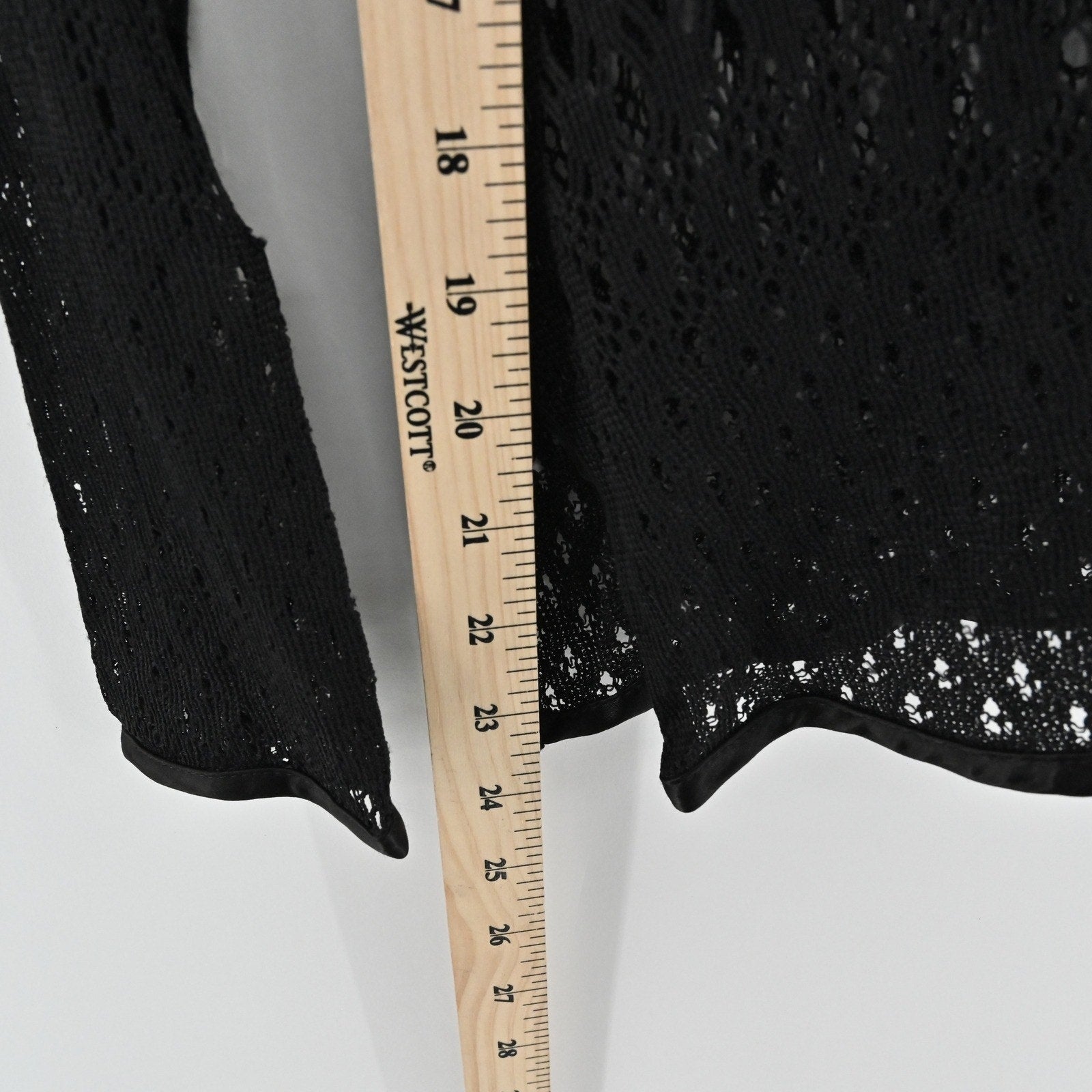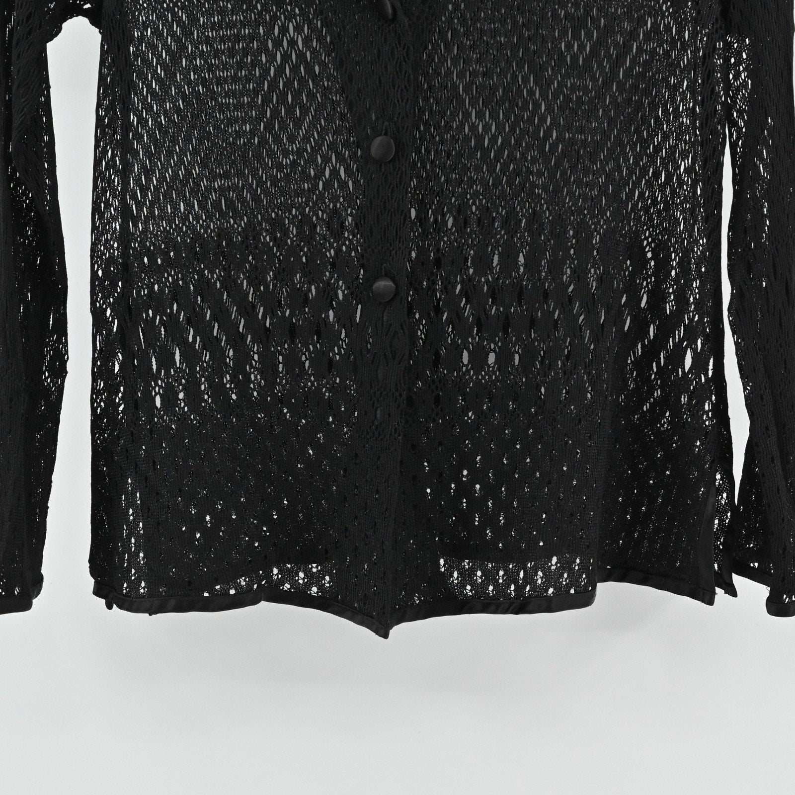 Vtg Y2k Mica Womens Black Knit Crochet Top Size 4 Sheer Mesh Button Long Sleeve