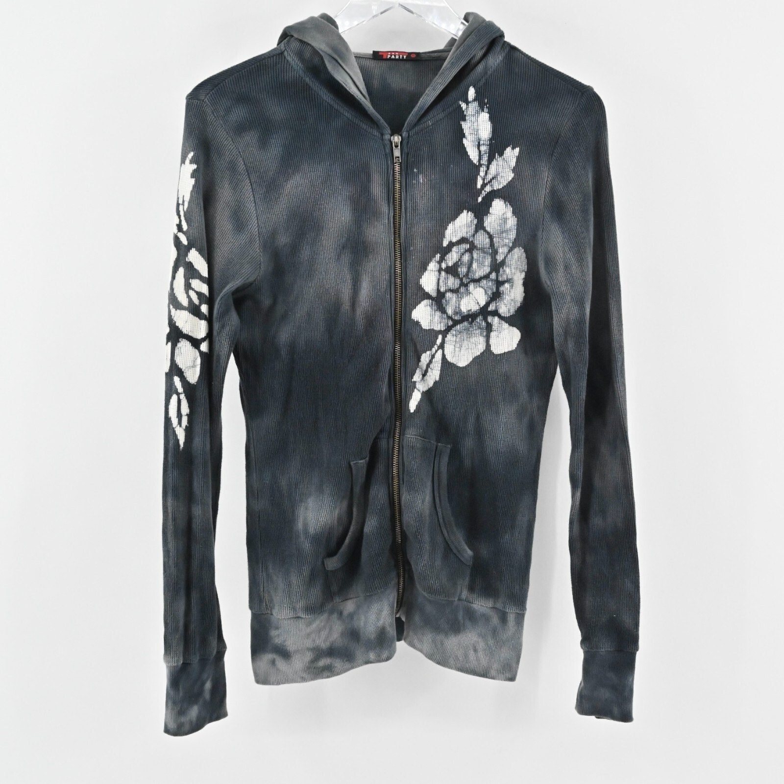 Vtg Y2k T PARTY Womens Jacket Size S Full Zip Hooded Tie Dye Flower Navy Casual