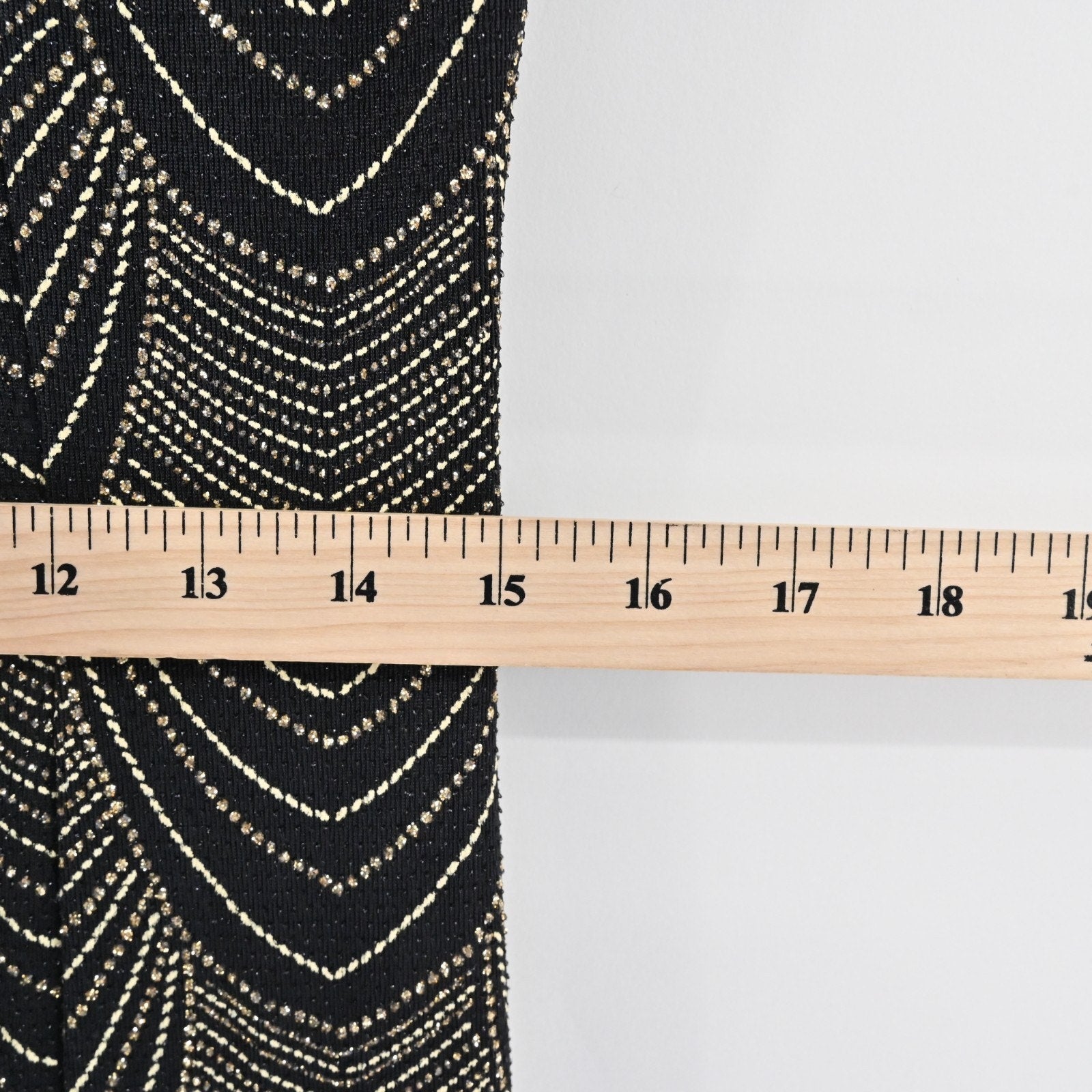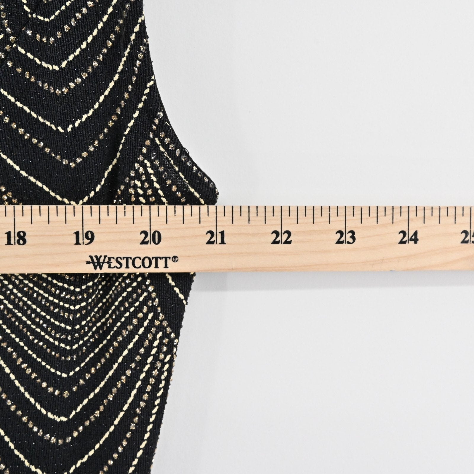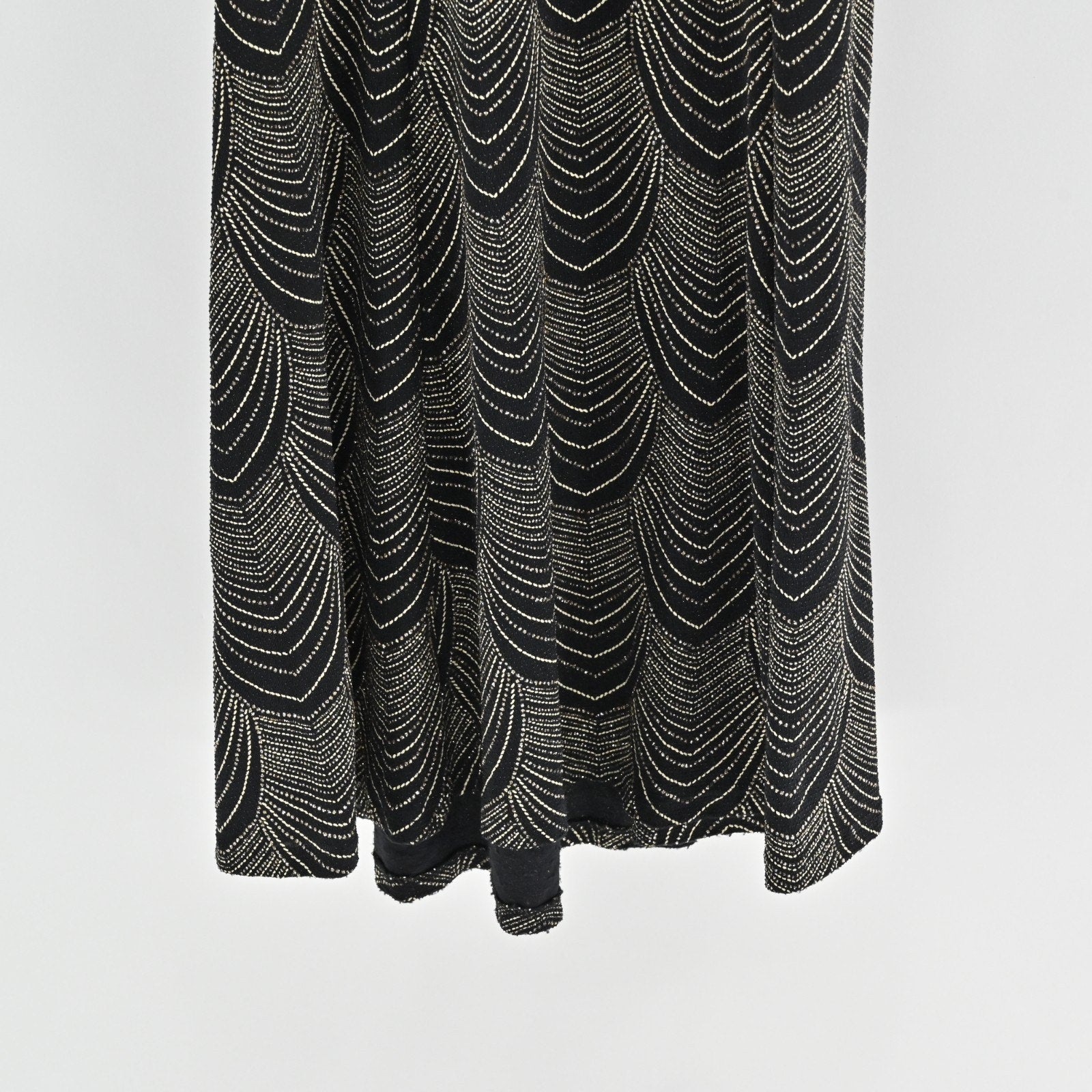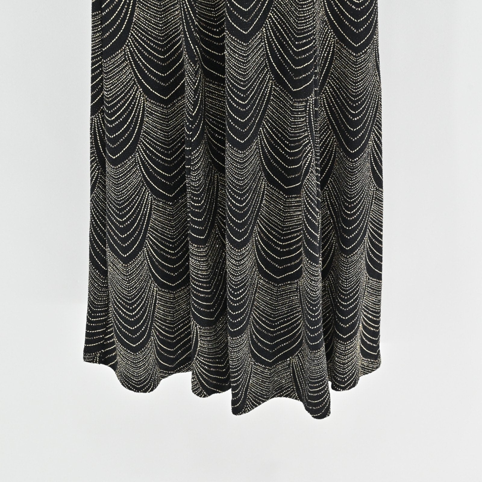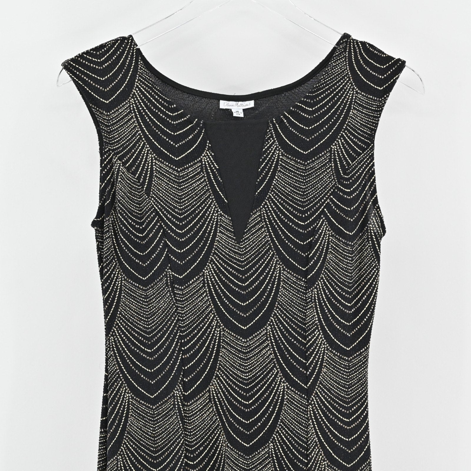 Style Profile: Vintage Lightweight Party Event Cocktail Black Tie Glitter Print Resort Sleek Elegant Classic Chic Shiny Statement Art Deco Inspired Vintage Glam Floor Length Formal Evening Dress Sleeveless Gown Metallic Thread Detail Scallop Pattern Black And Gold Keyhole Neckline Body Skimming Silhouette Roaring Twenties Great Gatsby Style Elegant Statement Piece Special Occasion Fashion