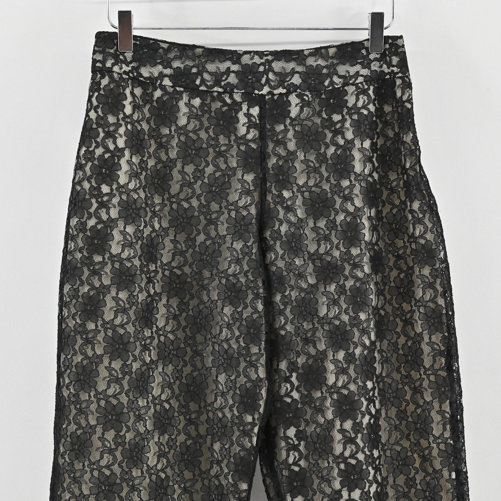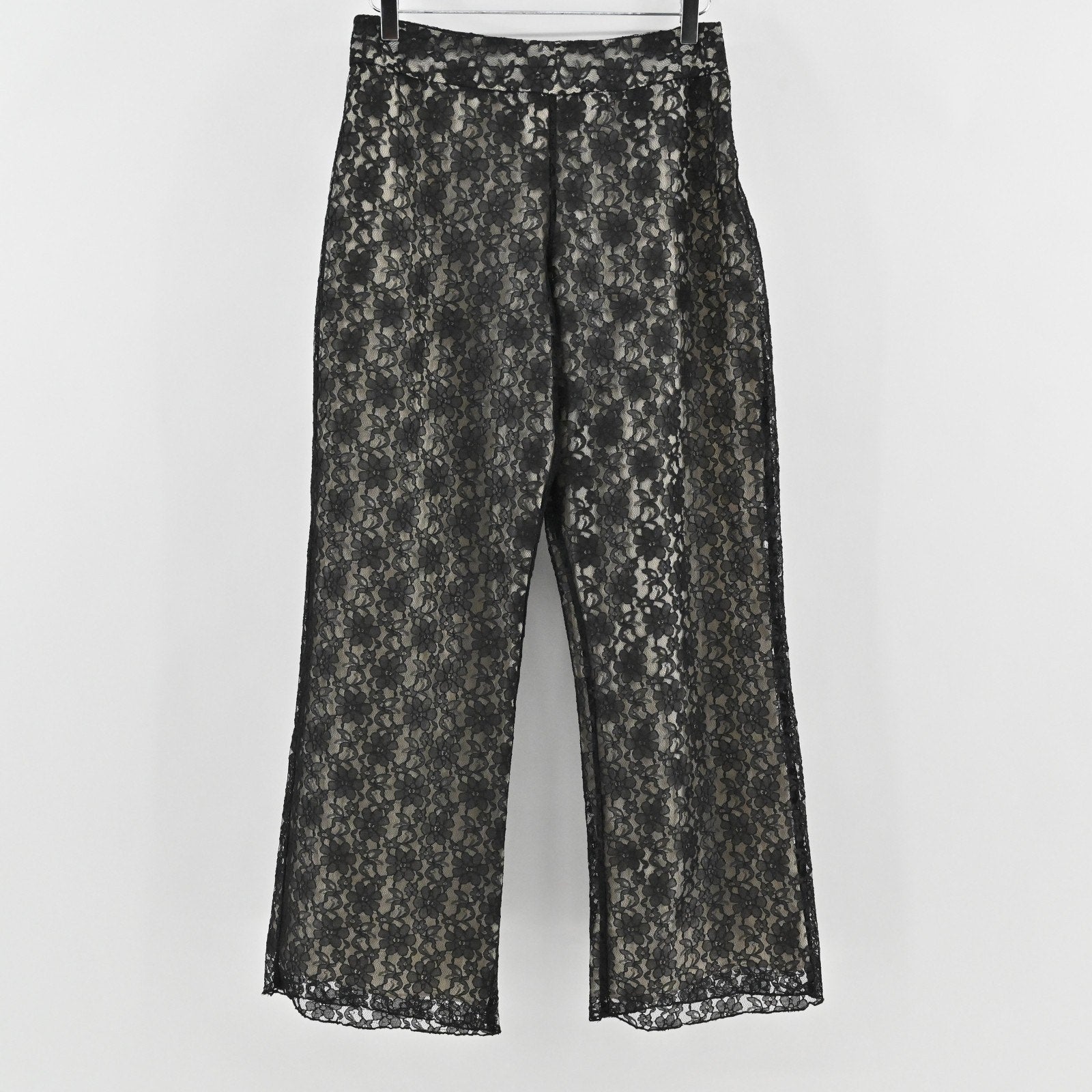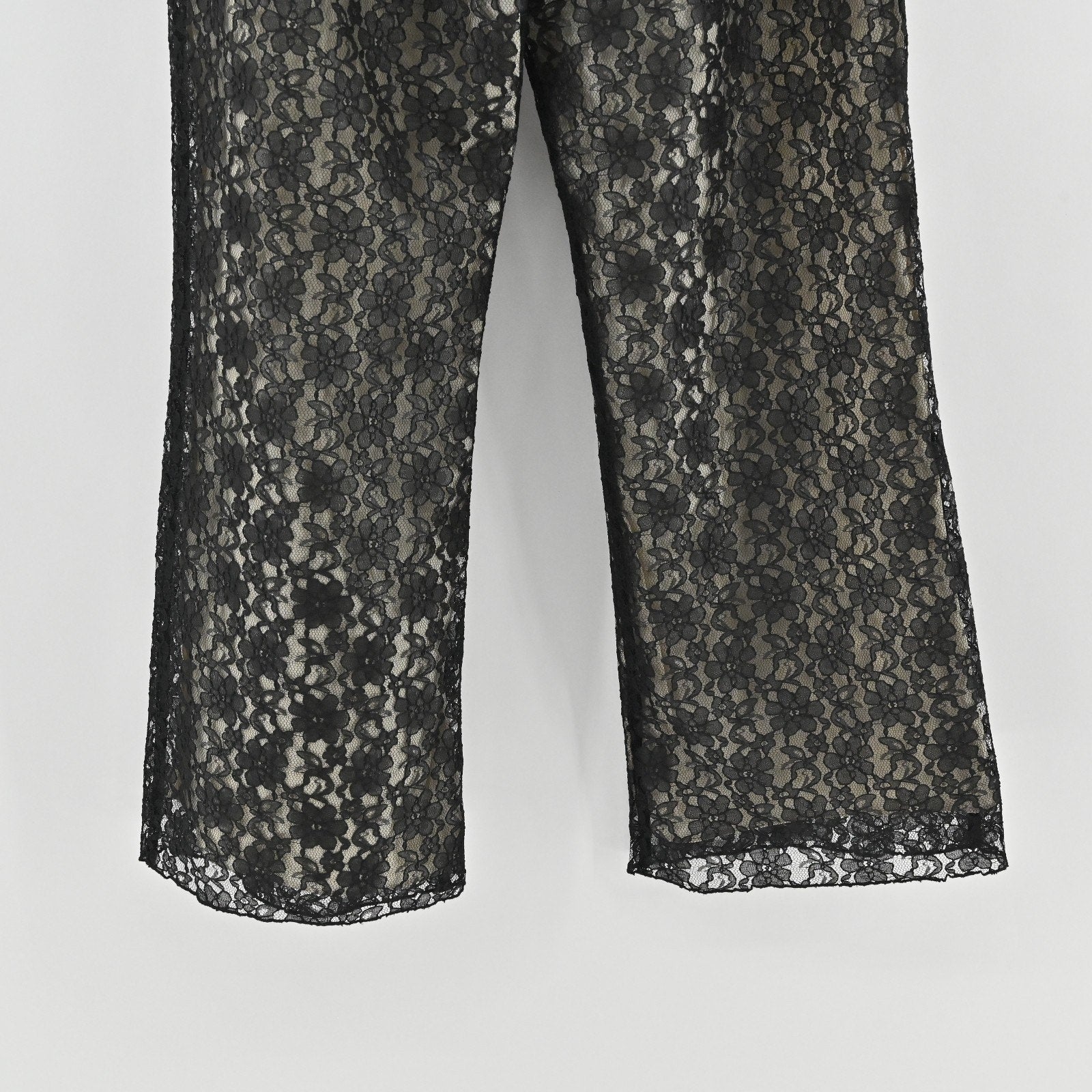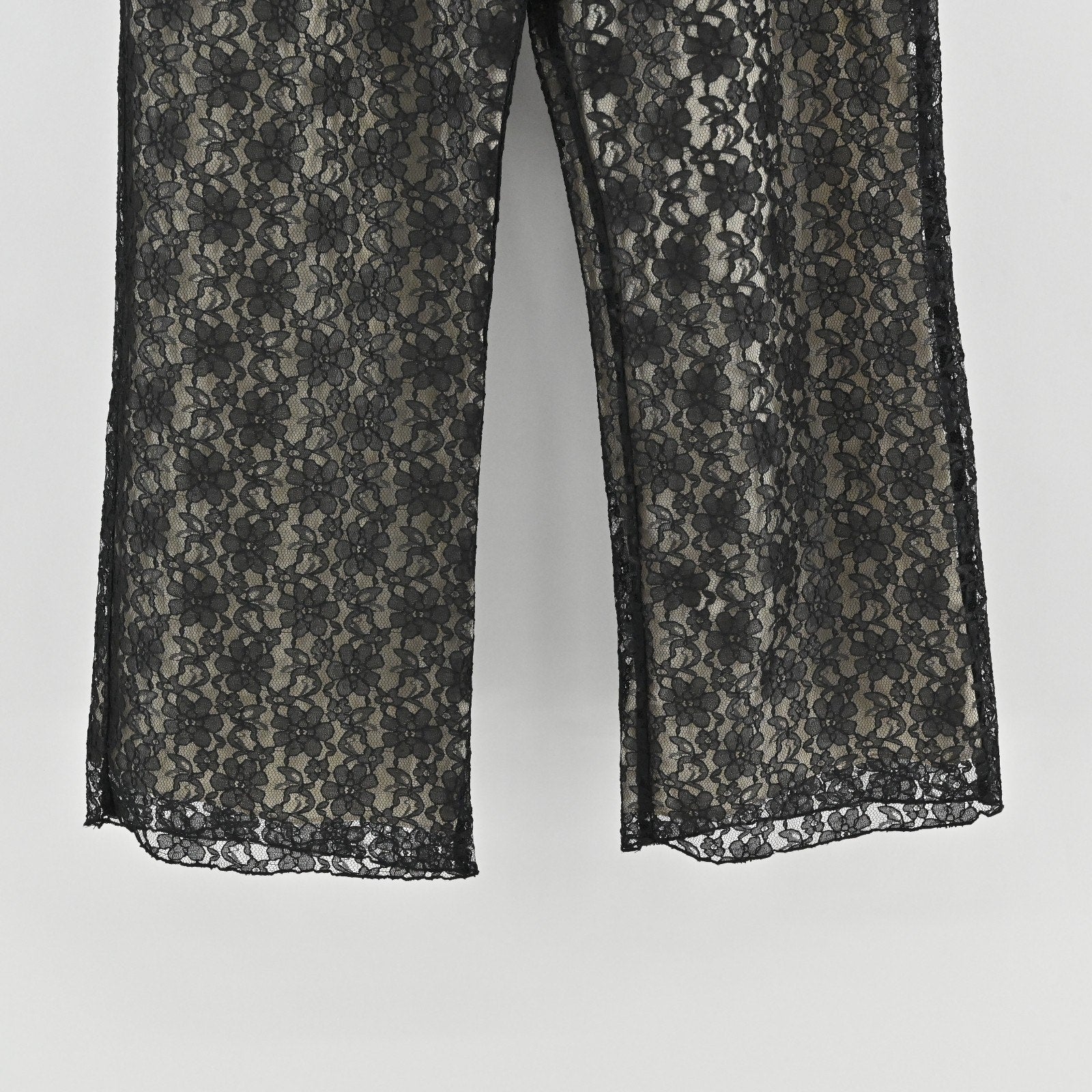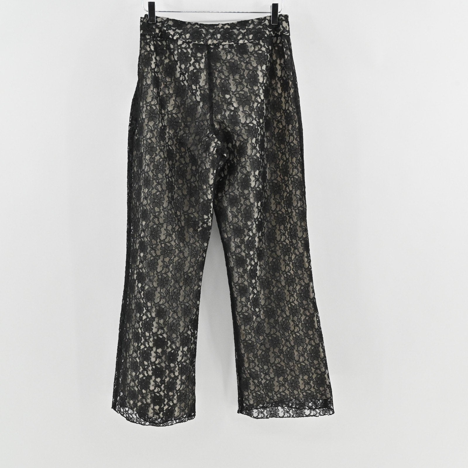 Vtg Y2k Womens Lace Wide Leg Pants Size 10 Whimsigoth Black Floral Sheer Lined