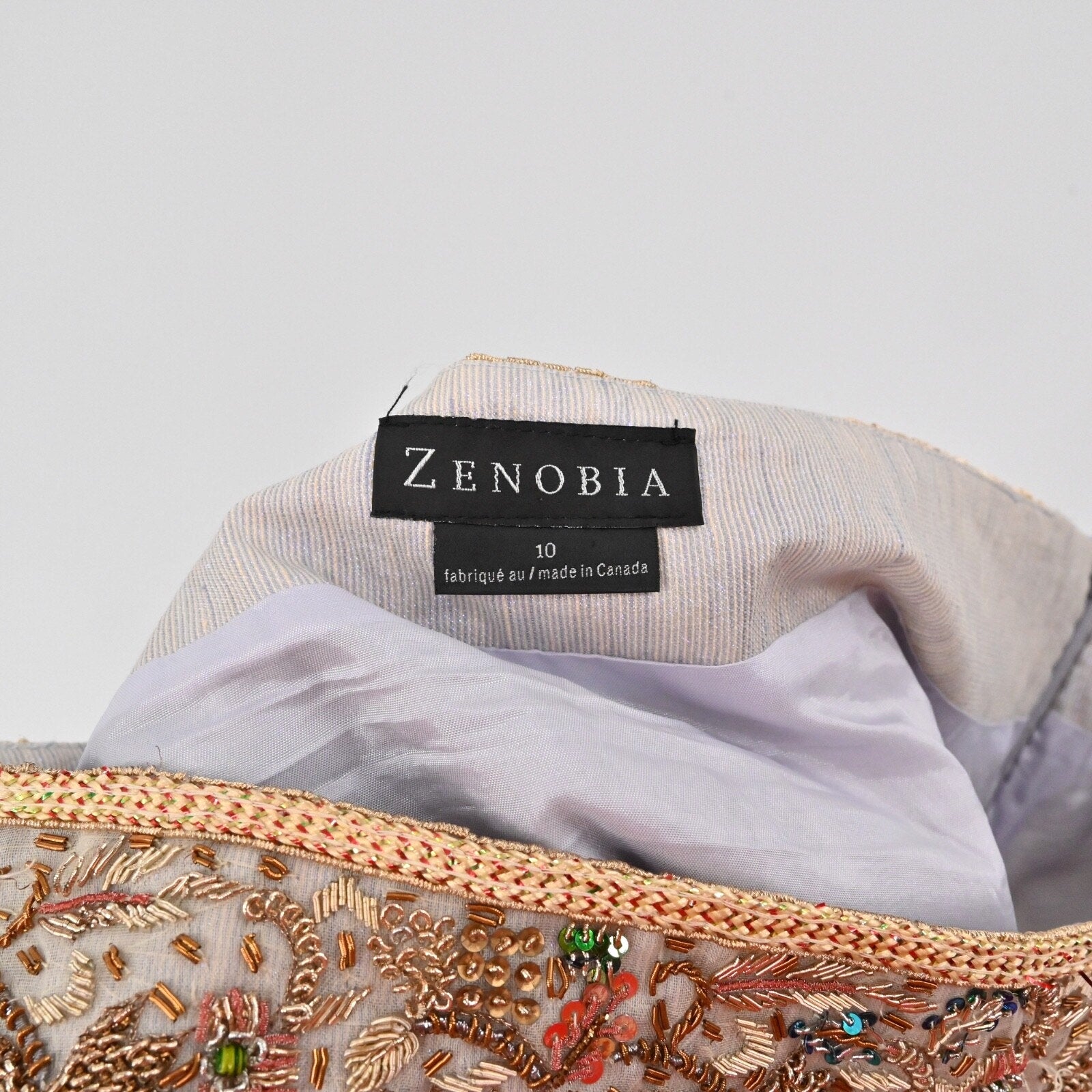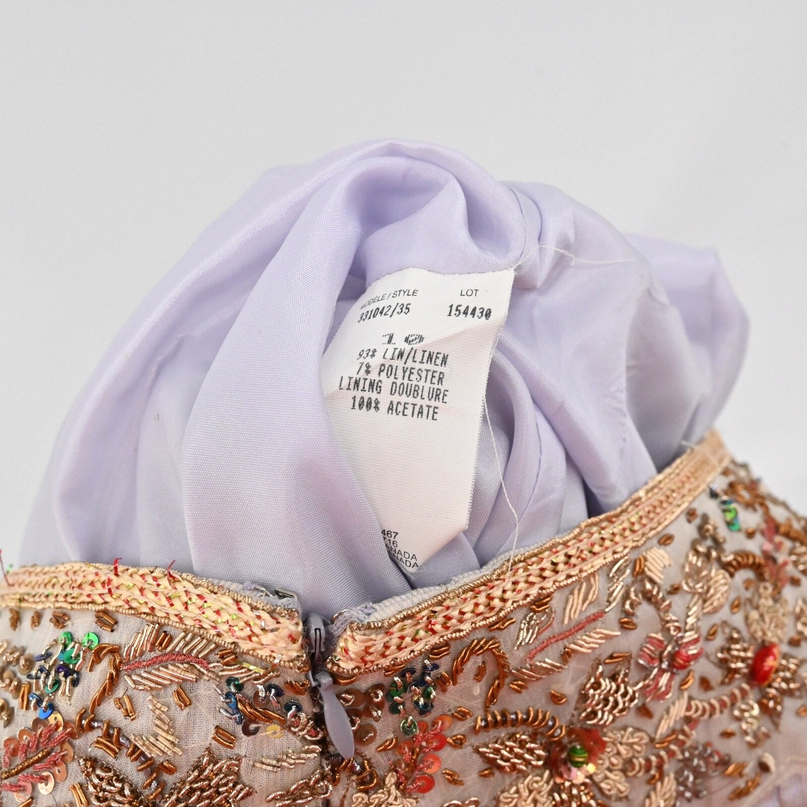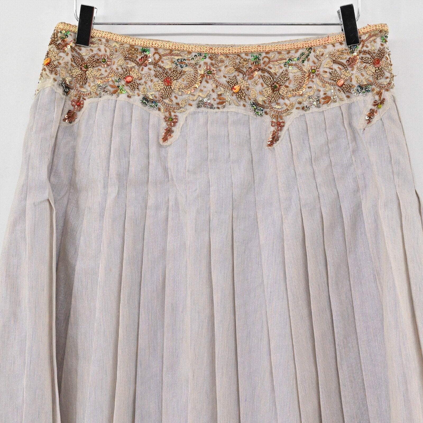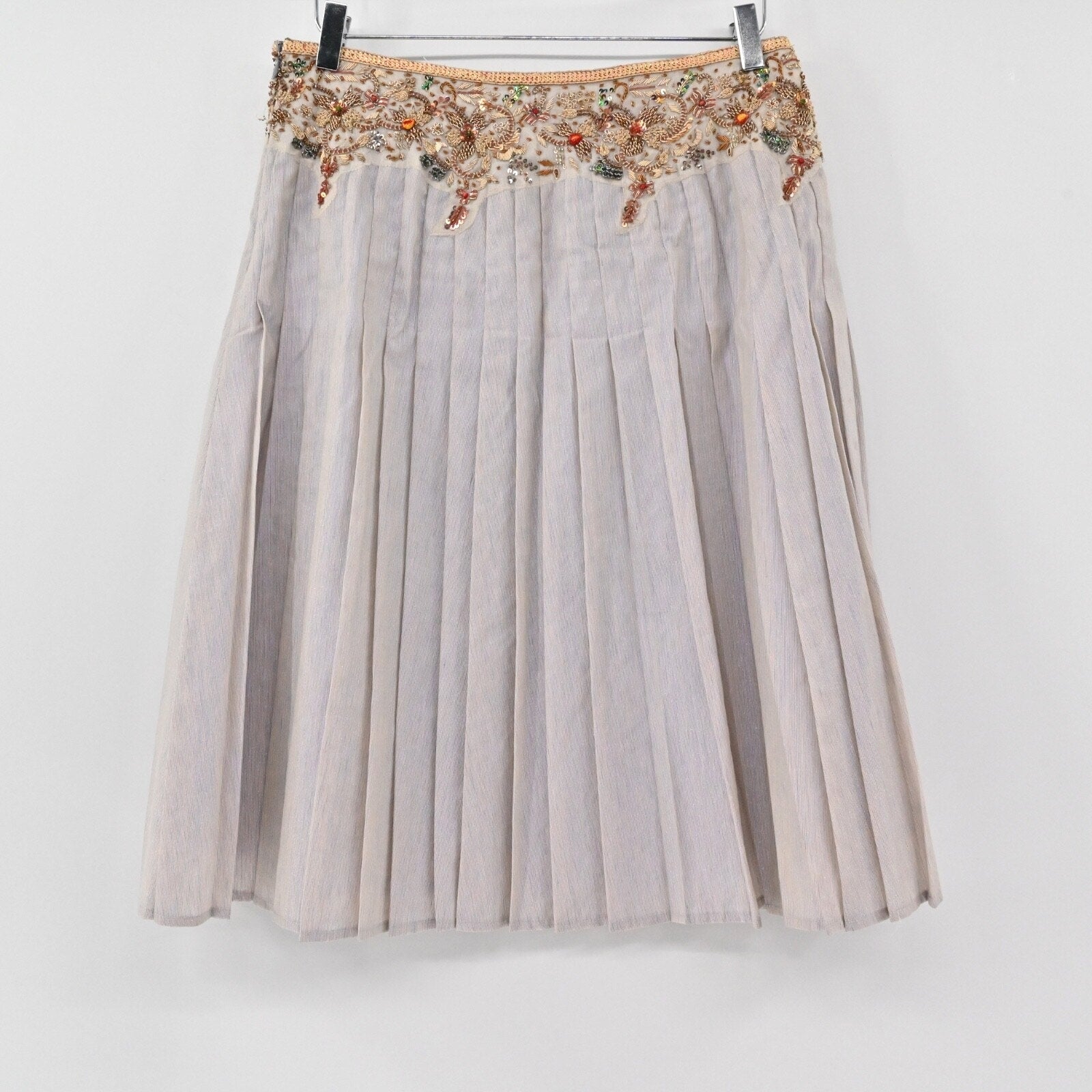 Vtg ZENOBIA Womens Pleated Skirt Size 10 Fairy Shimmer Sequin Beaded Linen Y2k