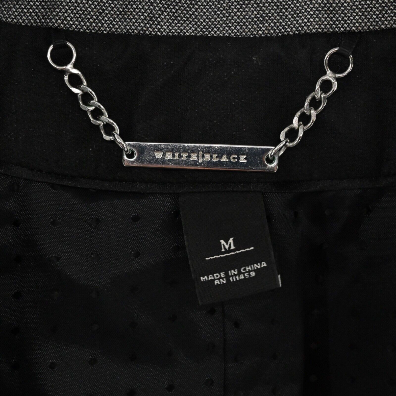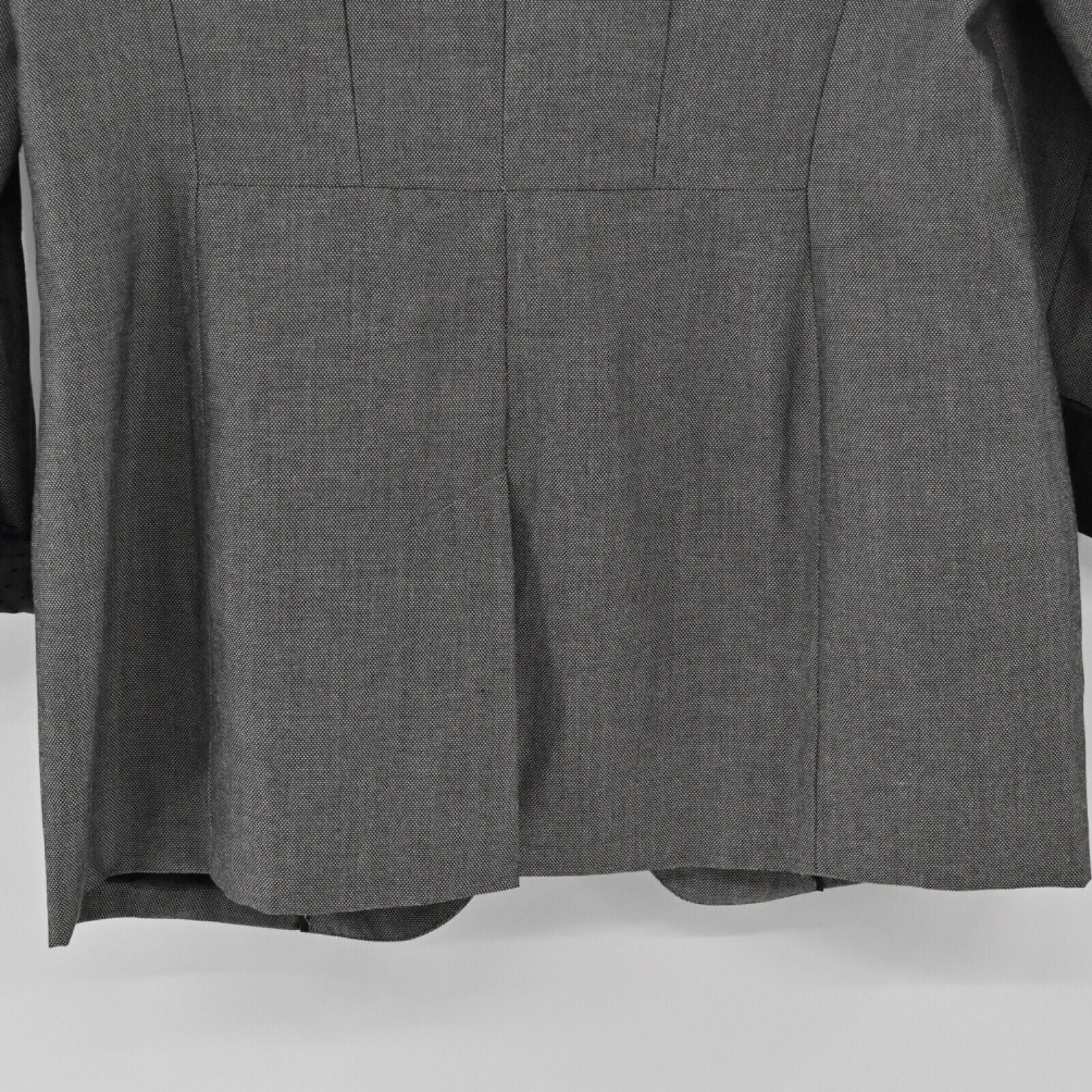 WHBM Blazer Womens Sz M Gray Black Ruffle Front Flip Cuff Retro Office Career