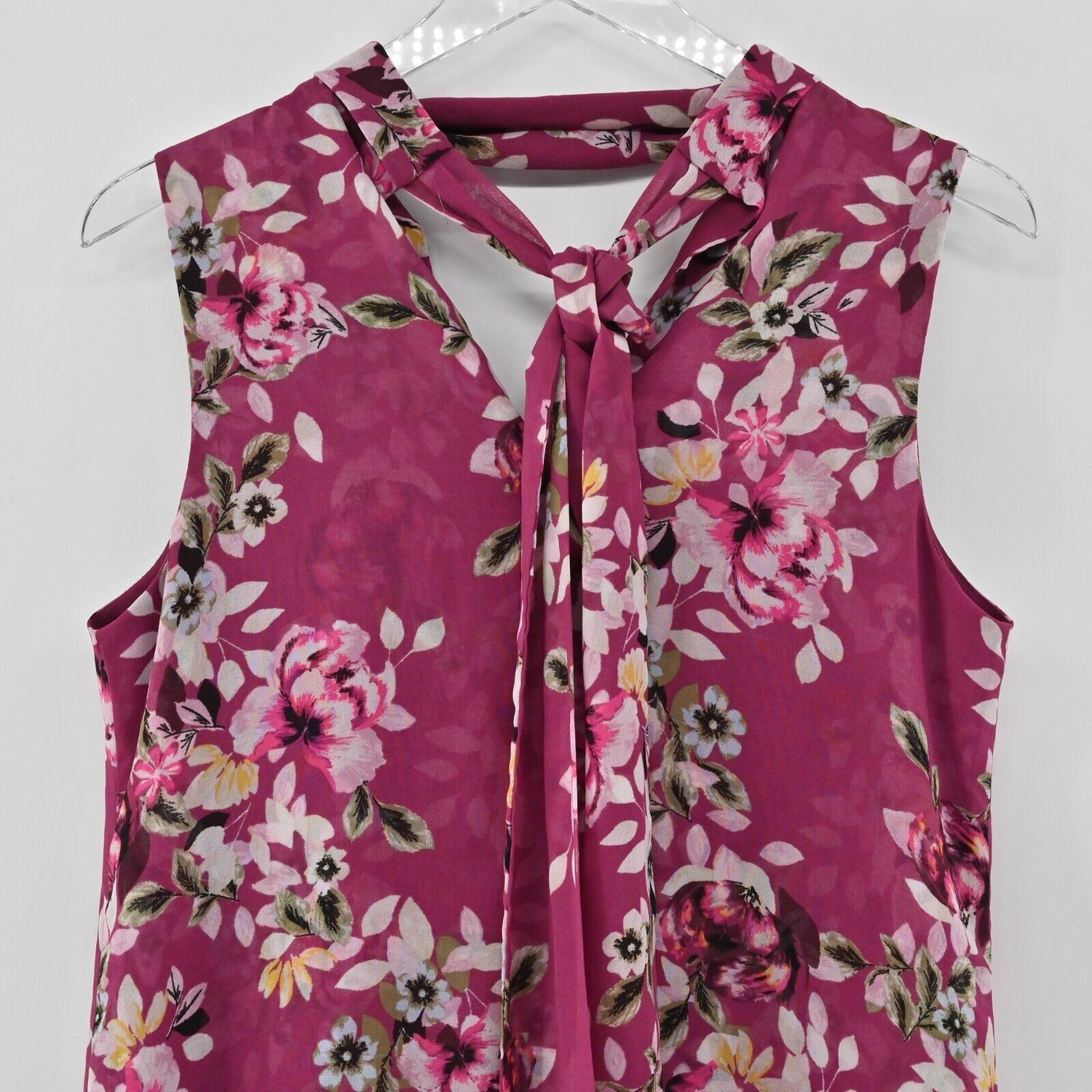 WHBM Dress Womens Sz 6 Floral Sleeveless Choker Keyhole Neck Shift Chiffon Lined