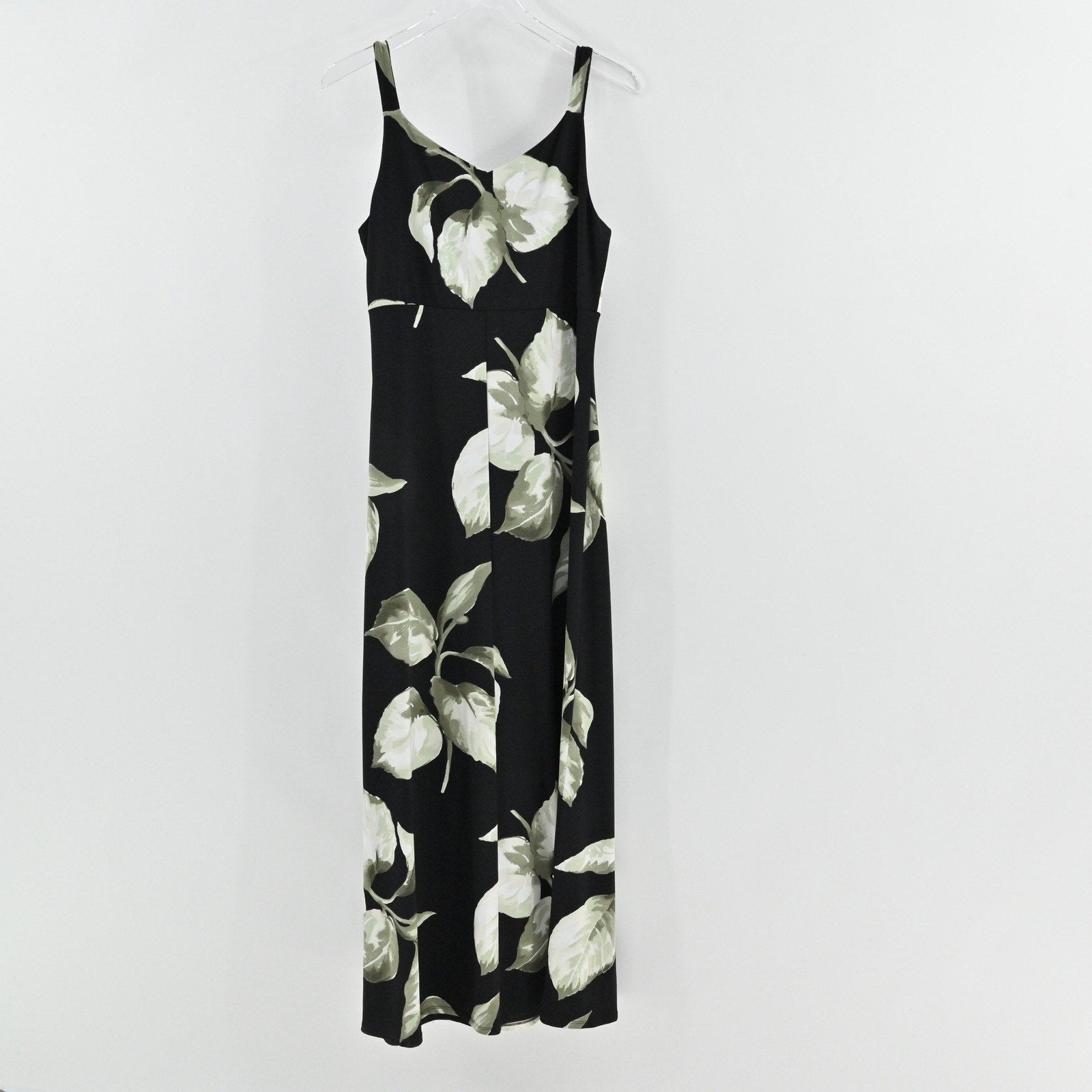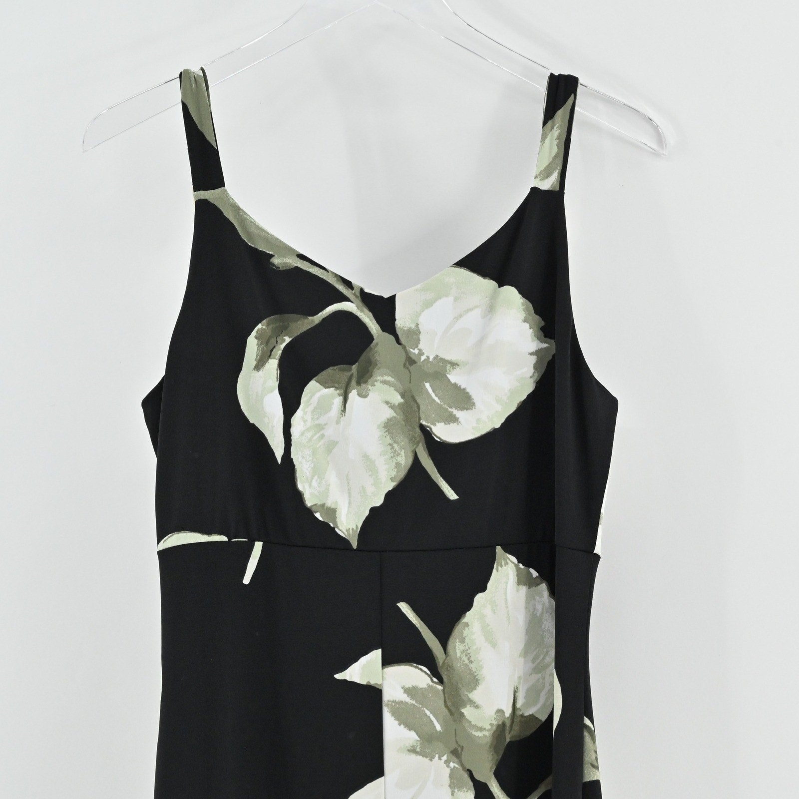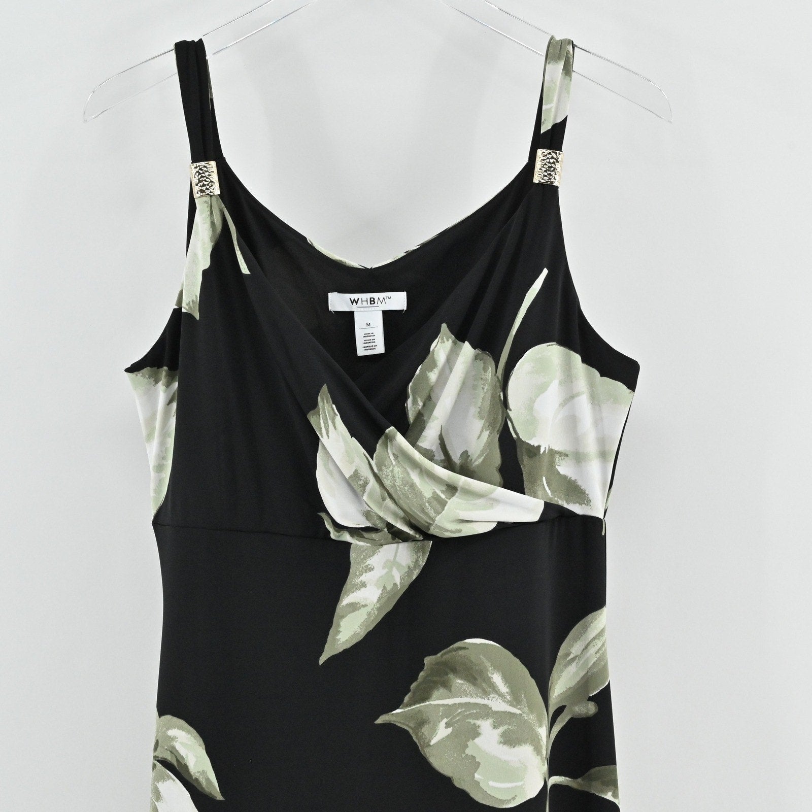 WHBM Maxi Dress Size M Black Green Floral Tropical Cruise Sleeveless Romantic