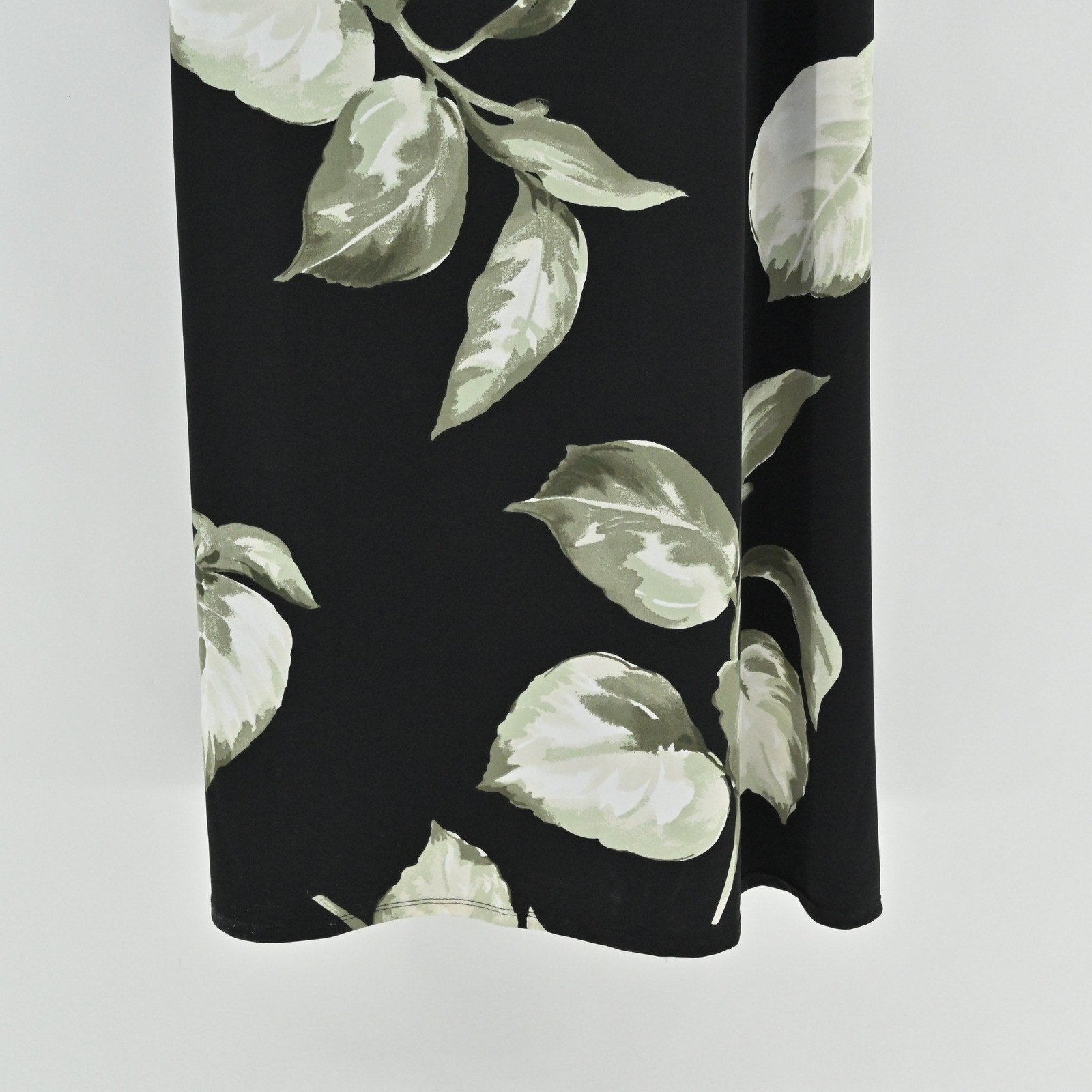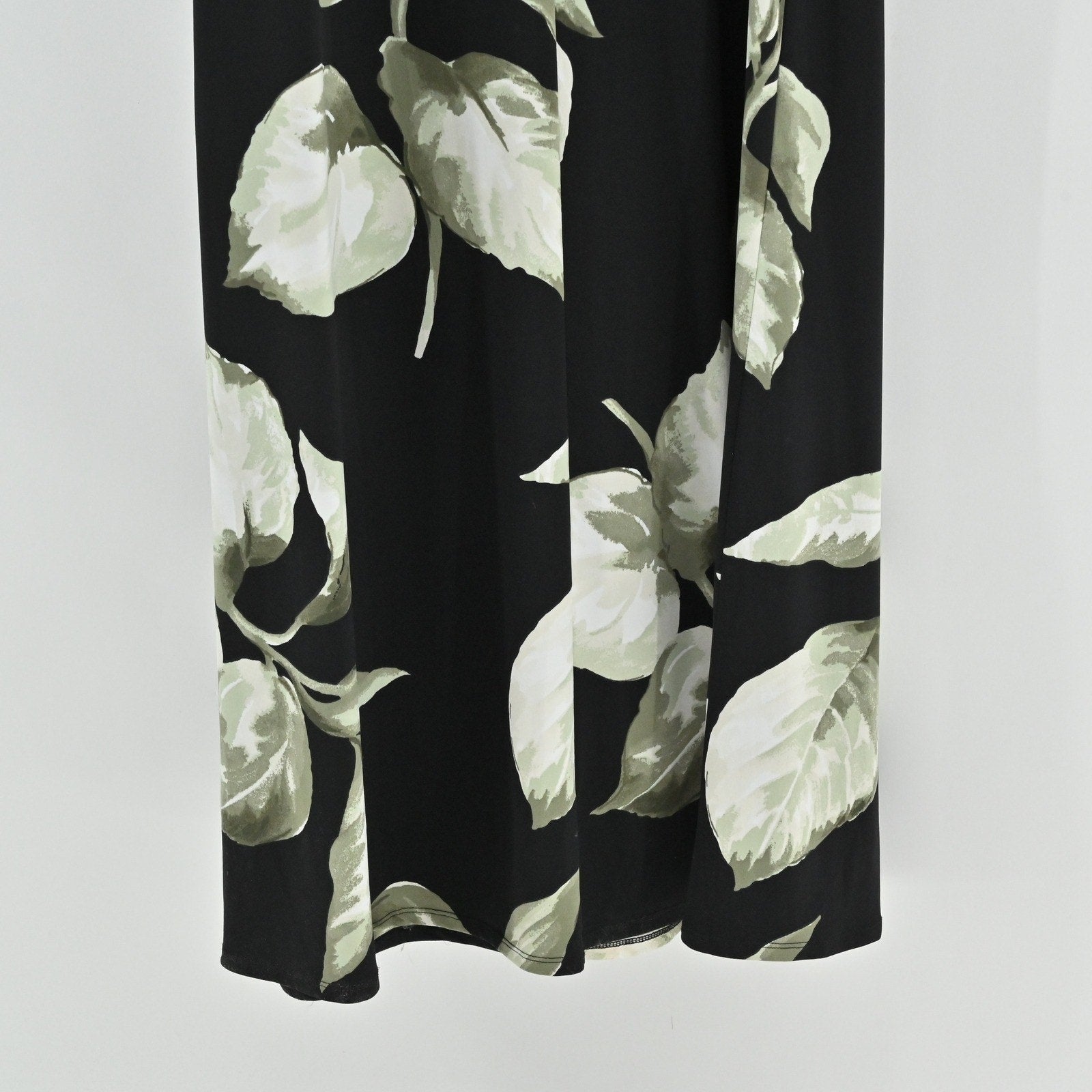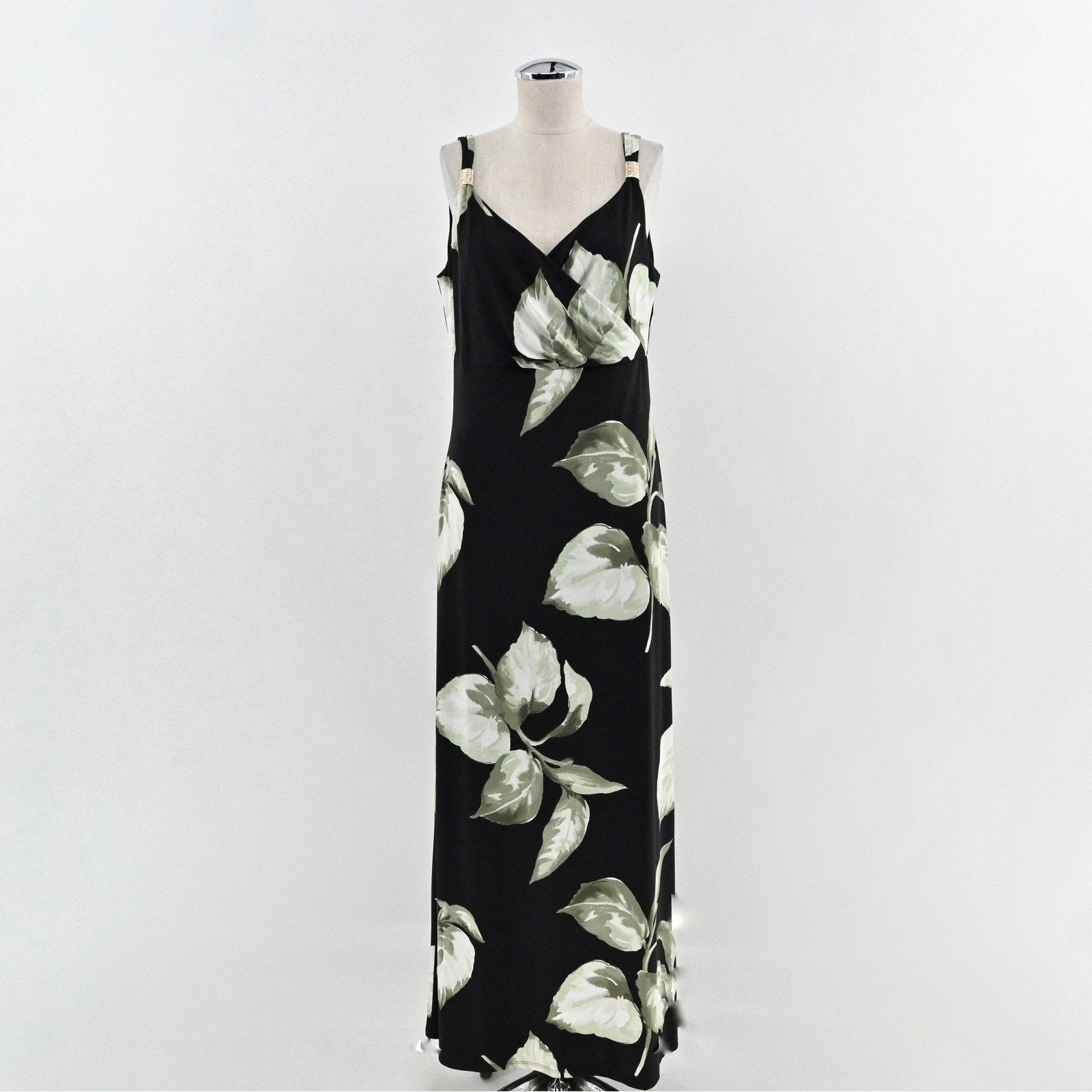 WHBM Maxi Dress Size M Black Green Floral Tropical Cruise Sleeveless Romantic