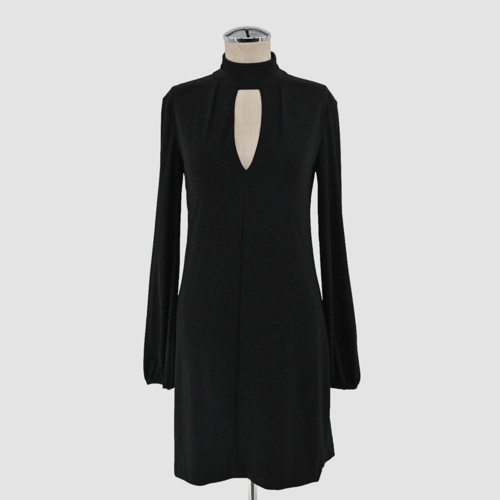 WHBM Mock Neck Knit Sheath Dress Size 2 Black Dark Romantic Whimsigoth Keyhole