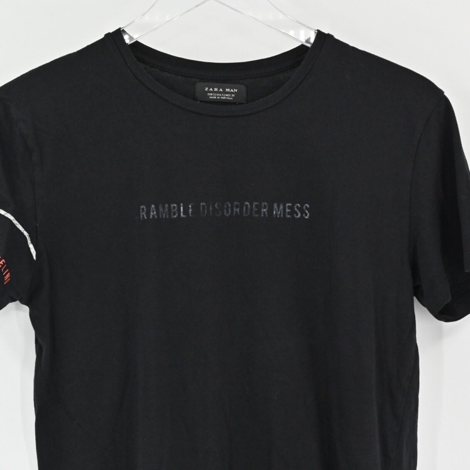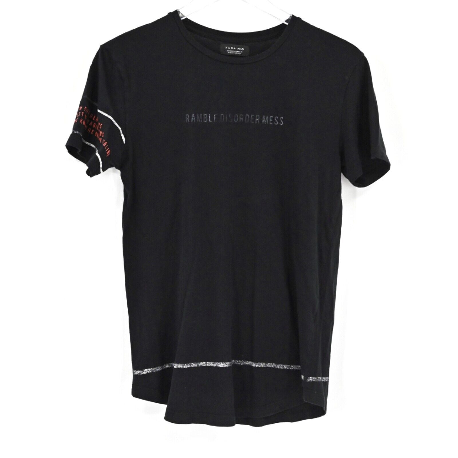 ZARA MAN Graphic Tee Mens Size S Black Ramble Disorder Mess Streetwear Punkcore